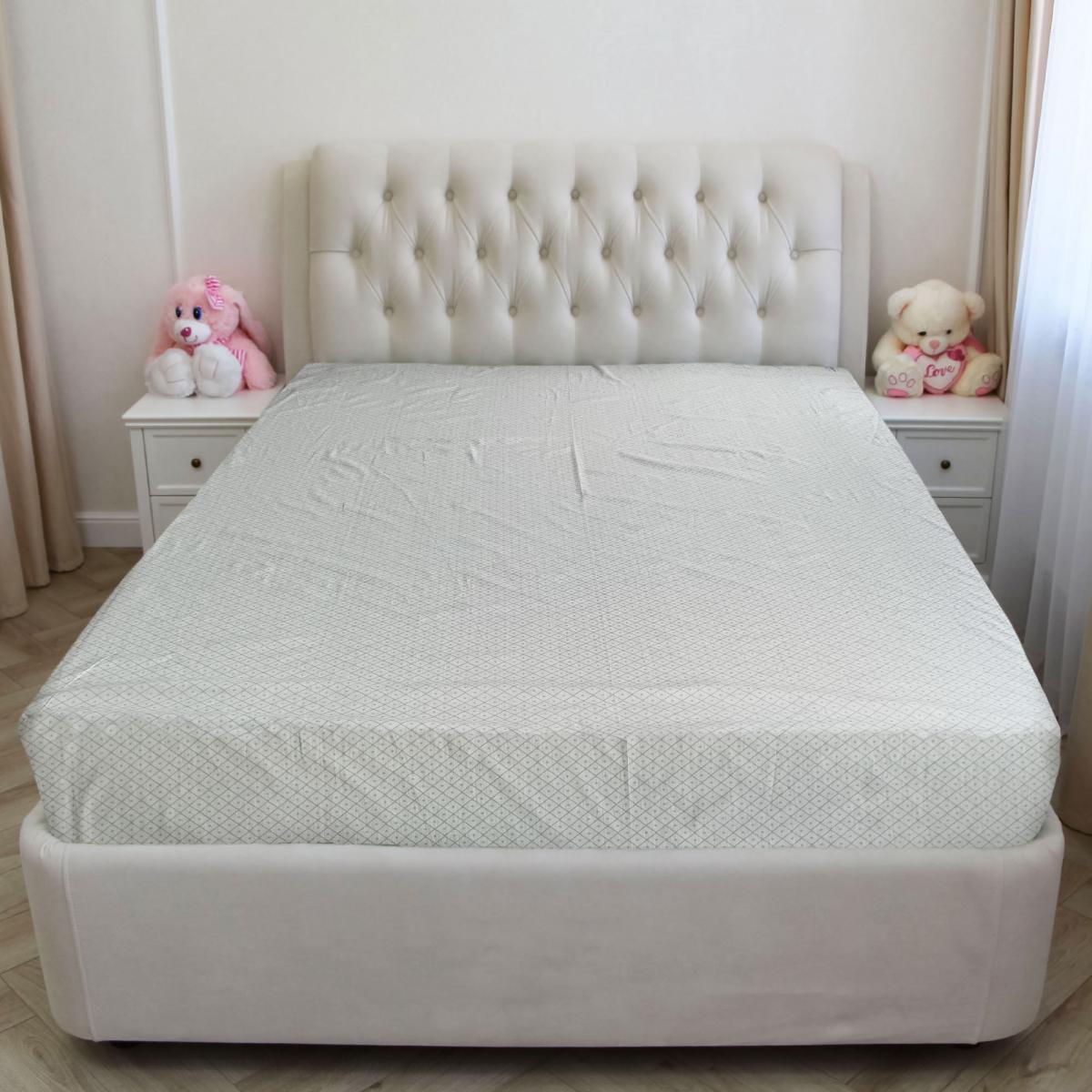 Простыня на резинке рассчитана на высоту матраса до 28 см. Резинка прошита по всему периметру простыни