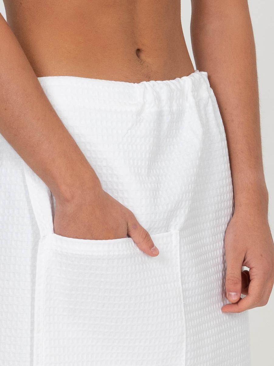 Запашной мужской килт - удобная замена банным полотенцам и халатам, не будет слетать и отвлекать внимание от приятного времяпровождения! Килт сшит из вафельного полотна (100% хлопок) - легко впитывают влагу и быстро сохнет. Килт для сауны снабжен текстильной застежкой-липучкой «велкро» и широкой резинкой, благодаря этому получается изделие универсального размера от 44 до 56 по отечественной системе мер. Хорошо будет смотреться на мужчине высокого и невысокого роста.