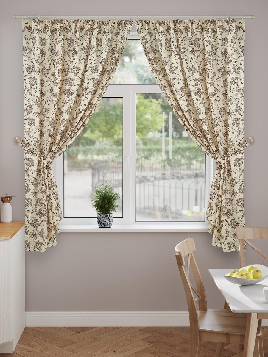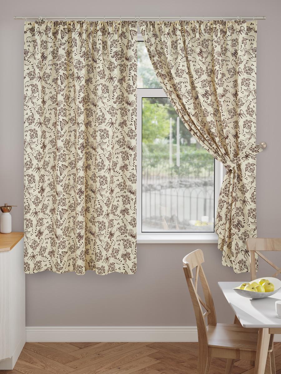 Шторы короткие с подхватами Бабочка бежевая