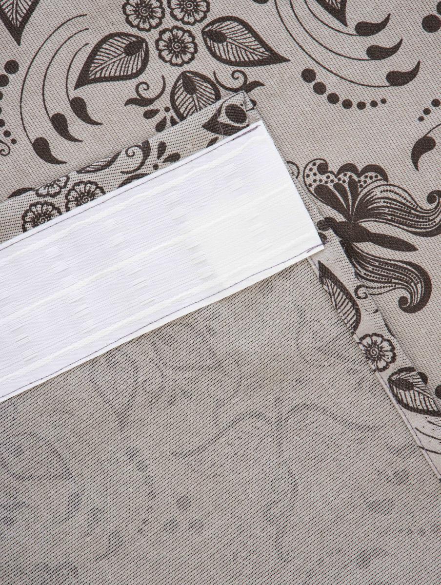 Набор штор состоит из 2-х полотен шириной 145 см и высотой 180 см и 2 подхватов с петлями из того же материала, что и сам комплект.