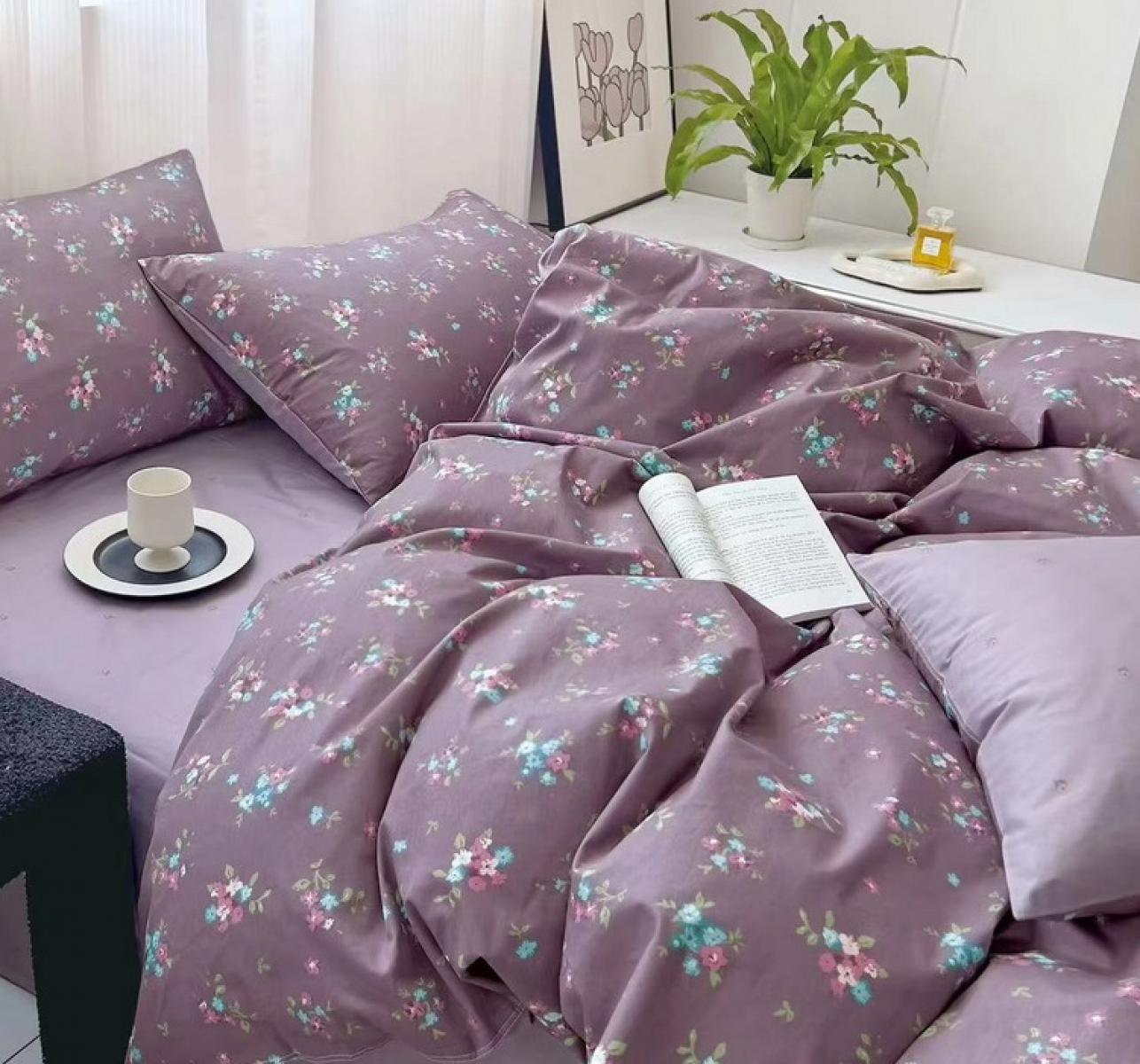 Простыня Винтажный сад сшита из основной ткани (как верх пододеяльника на фото).