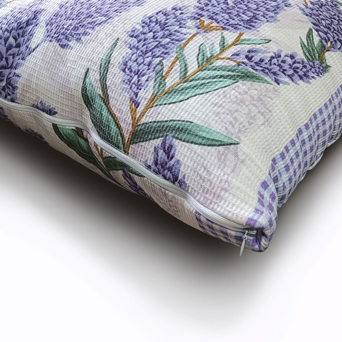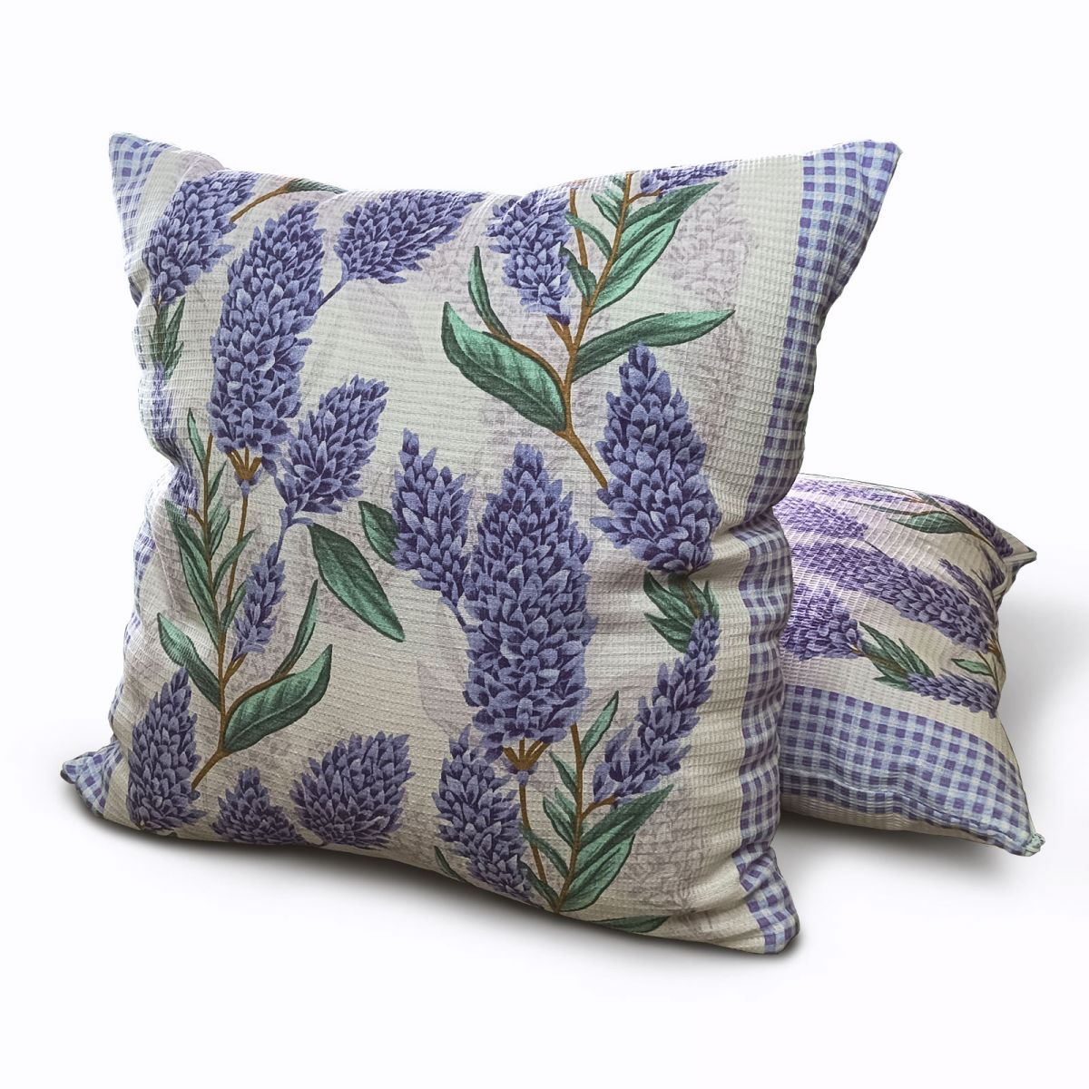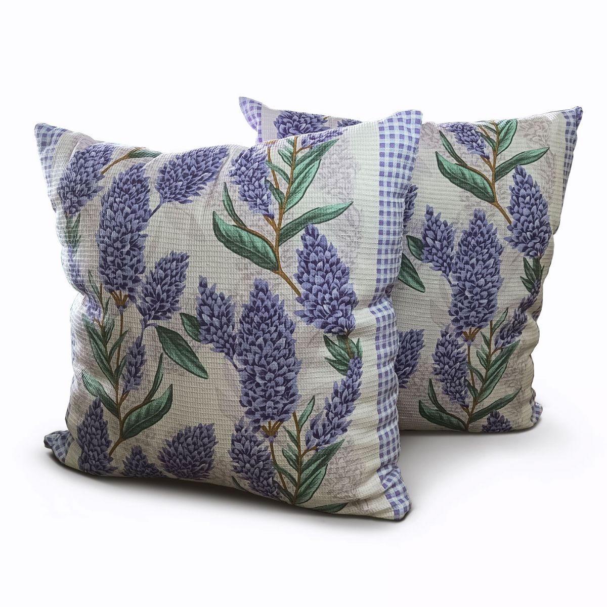Уютная декоративная подушка с нежным принтом лаванды. Натуральный хлопковый чехол, мягкий упругий наполнитель и легкий природный аромат сухой лаванды для спокойной атмосферы дома.