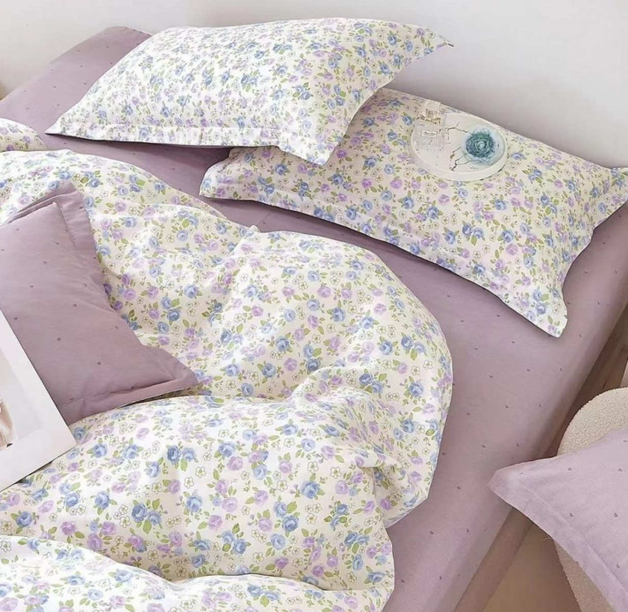 Пододеяльник Романтичный прованс полностью сшит из основной ткани (как верх пододеяльника на фото).