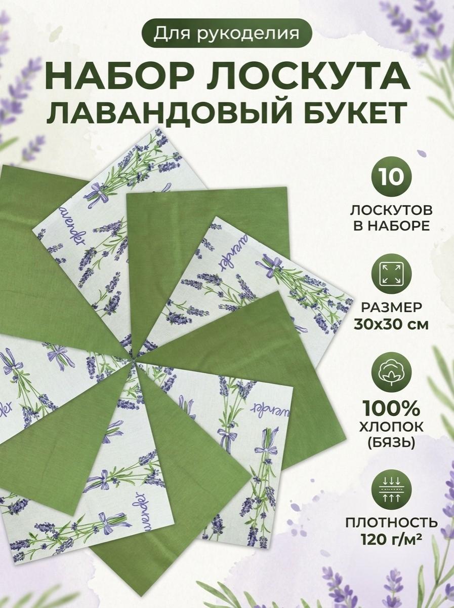 Создайте уникальные и яркие проекты с набором лоскута «Лавандовый букет». Этот комплект состоит из 10 квадратов размером 30x30 см, выполненных из 100% хлопка с плотностью 120 г/м². Каждый кусочек ткани радует глаз весенними мотивами, которые идеально подойдут для пэчворка, различных рукодельных проектов и декора.