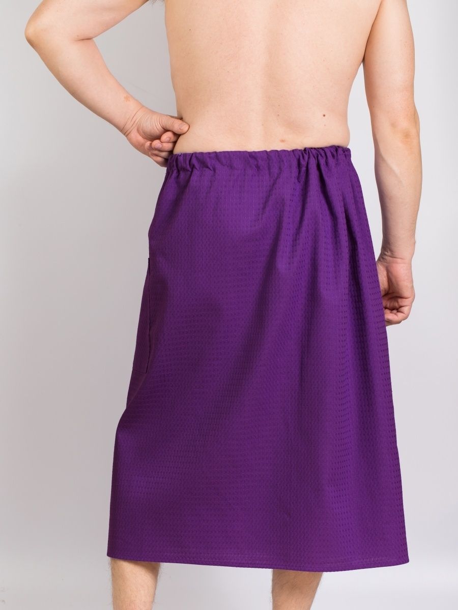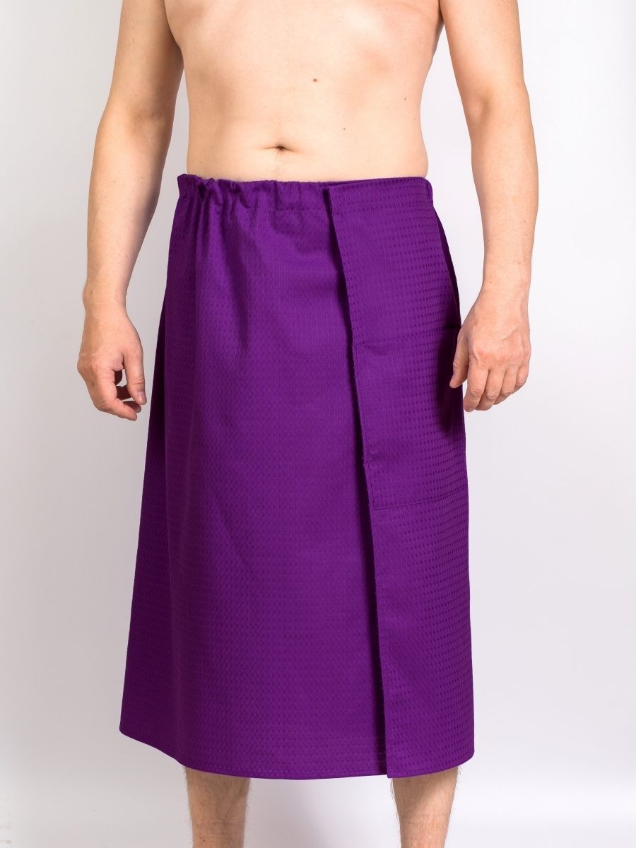 Запашной мужской килт - удобная замена банным полотенцам и халатам, не будет слетать и отвлекать внимание от приятного времяпровождения! Килт сшит из вафельного полотна (100% хлопок) - легко впитывают влагу и быстро сохнет. Килт для сауны снабжен текстильной застежкой-липучкой «велкро» и широкой резинкой, благодаря этому получается изделие универсального размера от 44 до 56 по отечественной системе мер. Хорошо будет смотреться на мужчине высокого и невысокого роста.