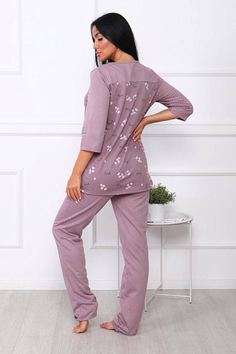 Пижама имеет стильный V-вырез у горловины с планкой, а рукава длиной 3/4 придают ей изысканный вид. Брюки на резинке обеспечивают отличную посадку и свободу движения, что делает эту пижаму незаменимой для тех, кто ценит комфорт.