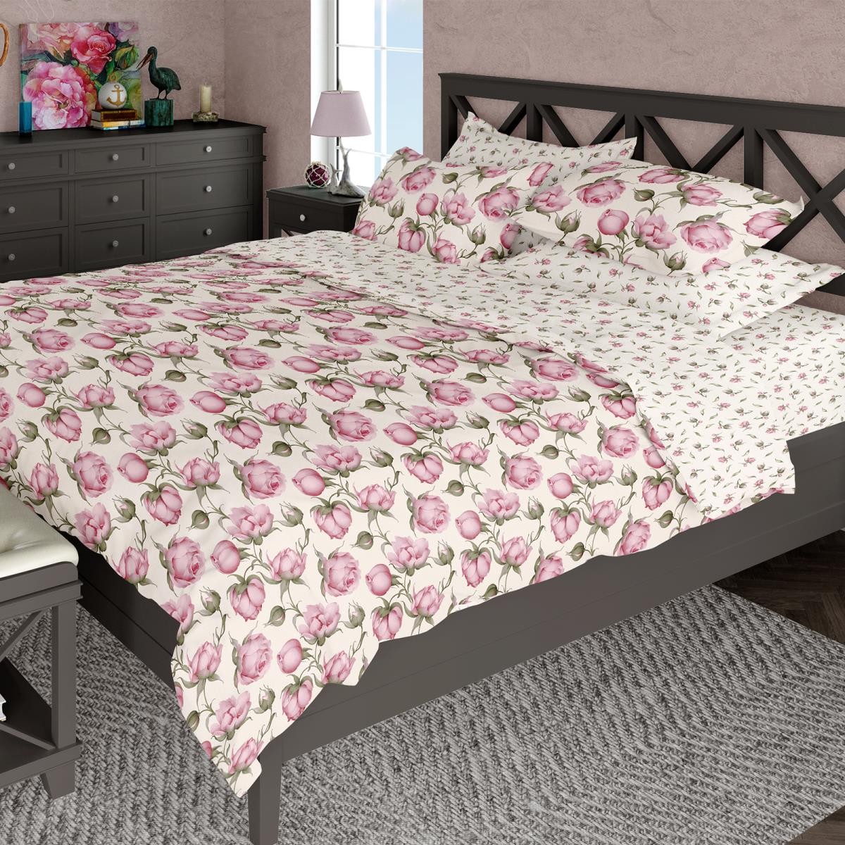 Простыня Цветочный сон сшита из основной ткани (как верх пододеяльника на фото).