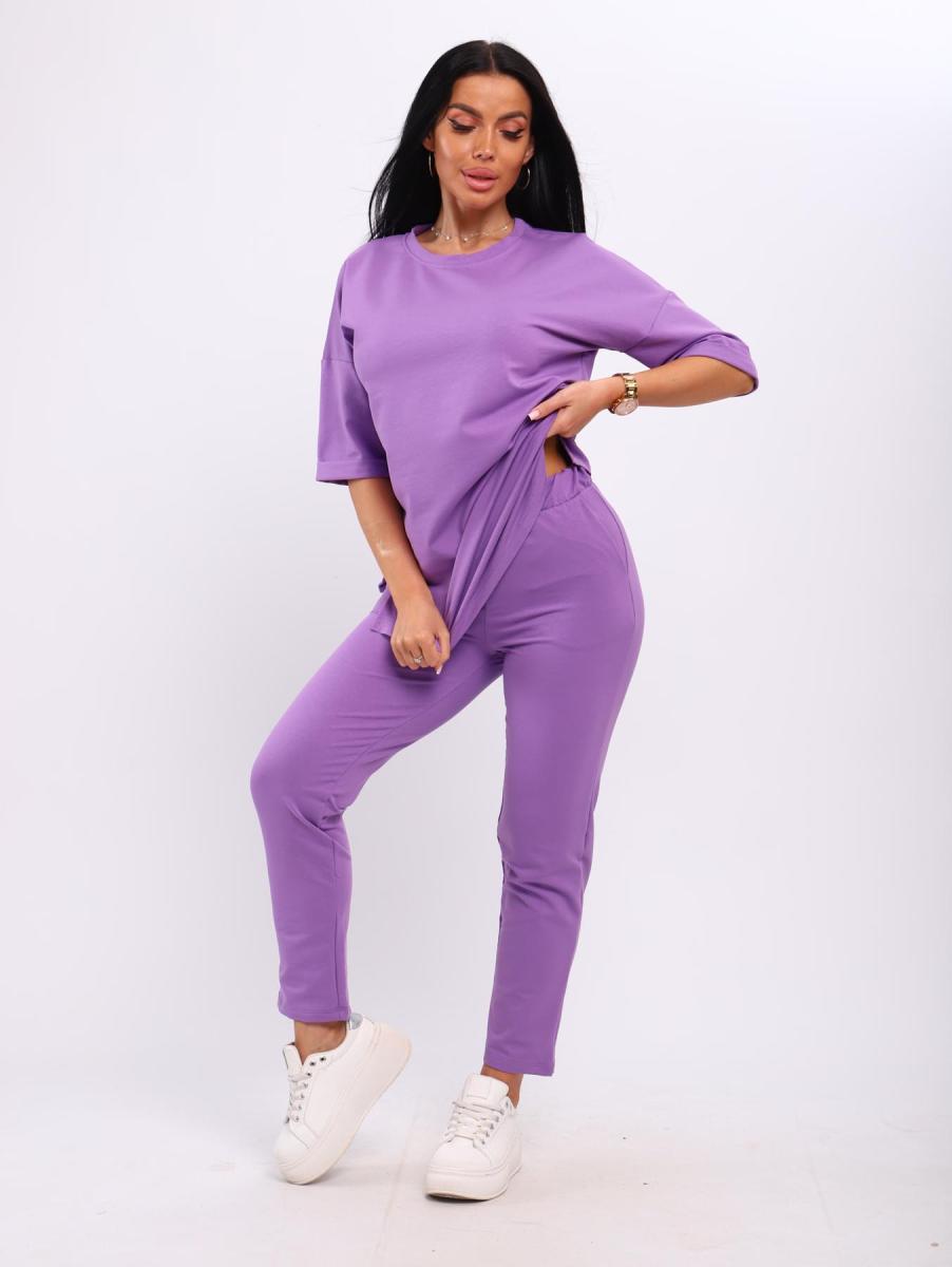Костюм с брюками, футер с лайкрой (01048, лиловый)