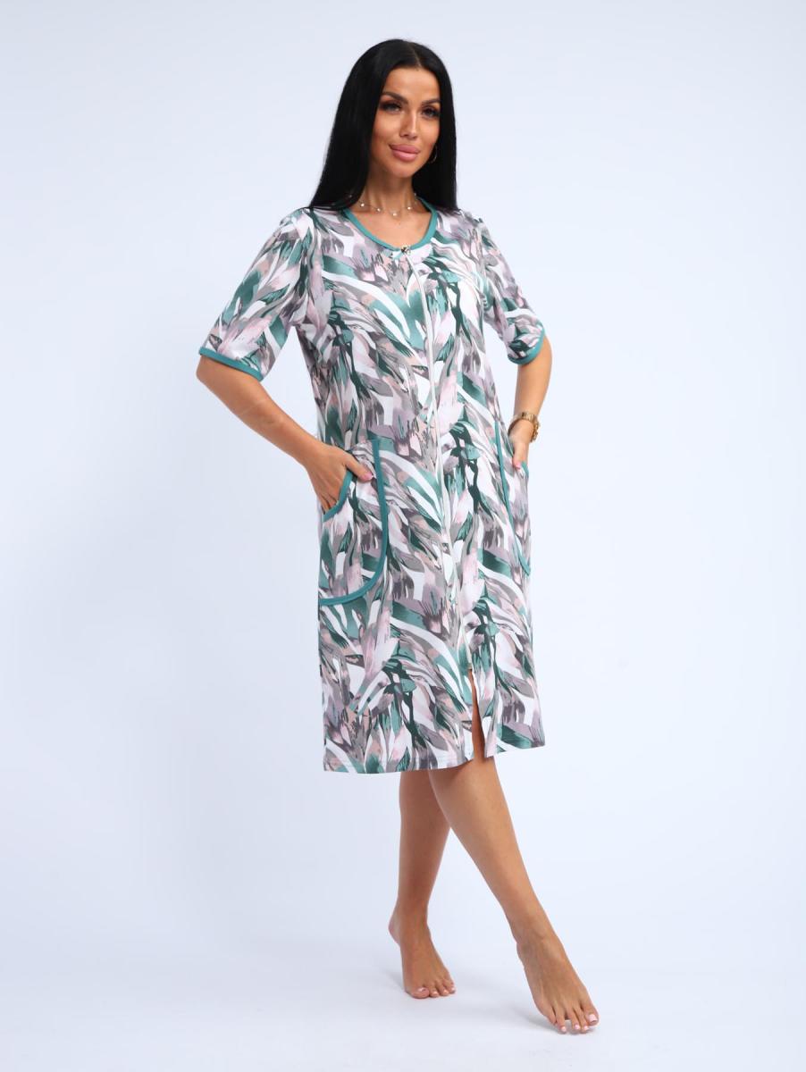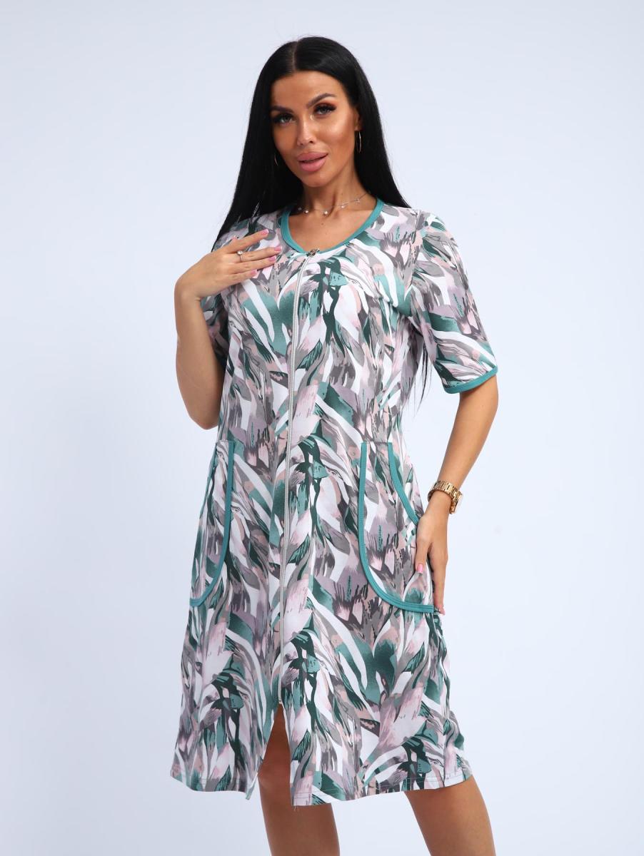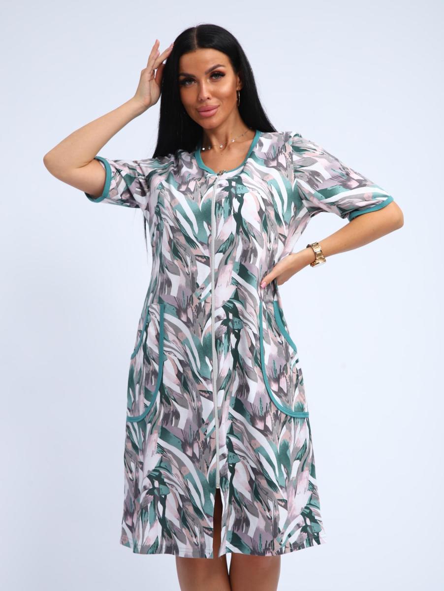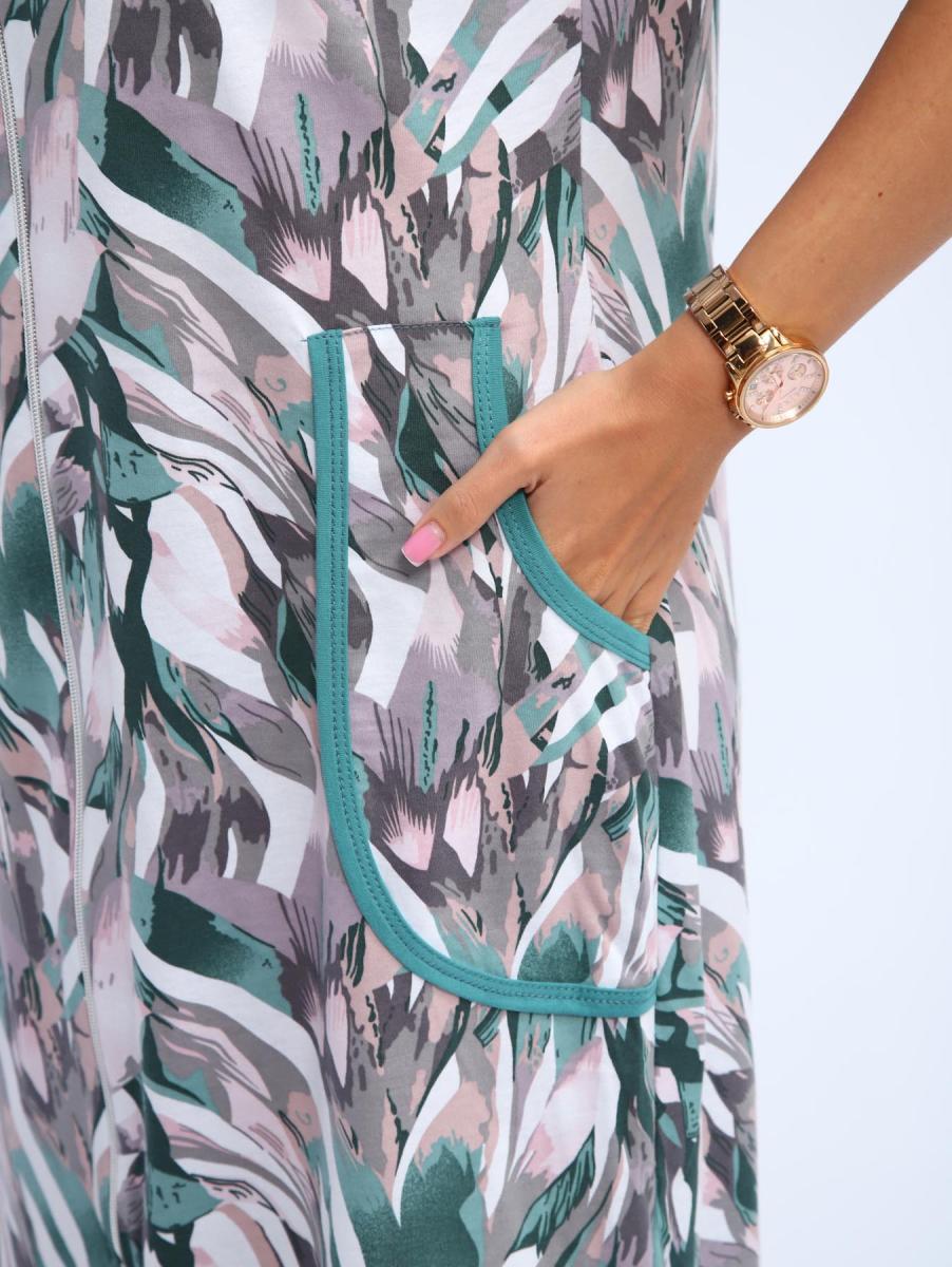 Халат на молнии из кулирки рулон (набивка). Халат с втачным рукавом и накладными карманами.