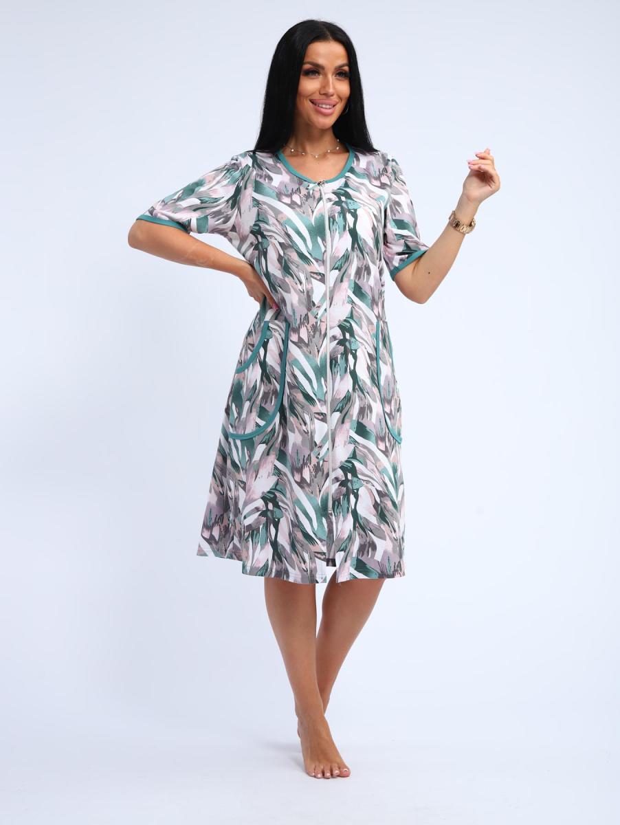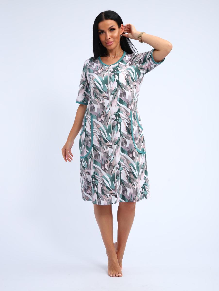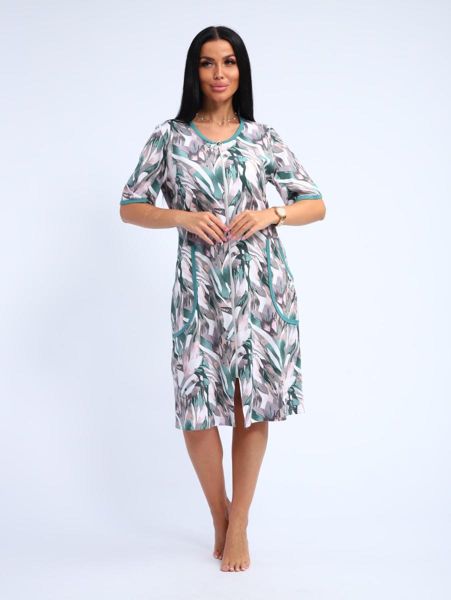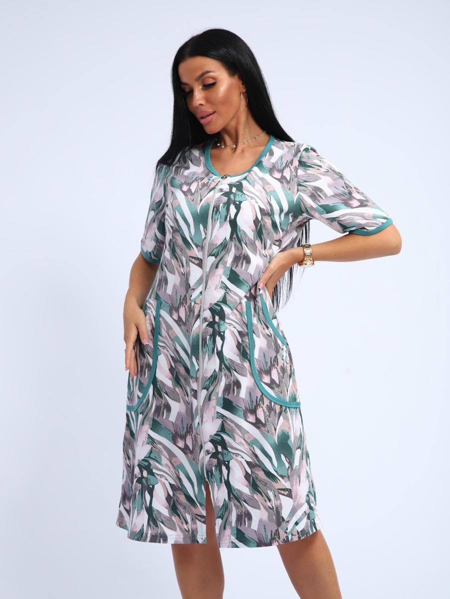 Халат на молнии из кулирки рулон (набивка). Халат с втачным рукавом и накладными карманами.