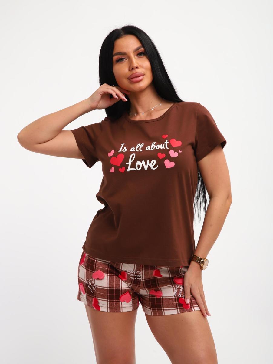 Пижама с шортами (01067, коричневый)