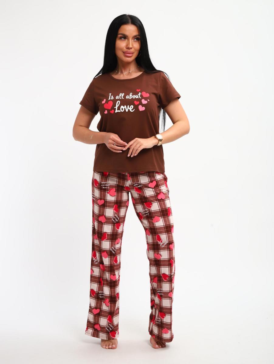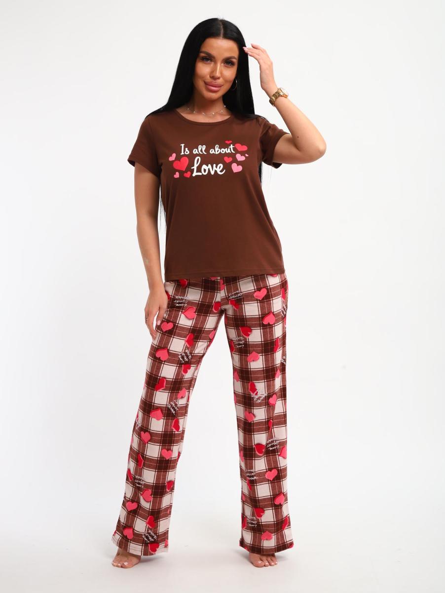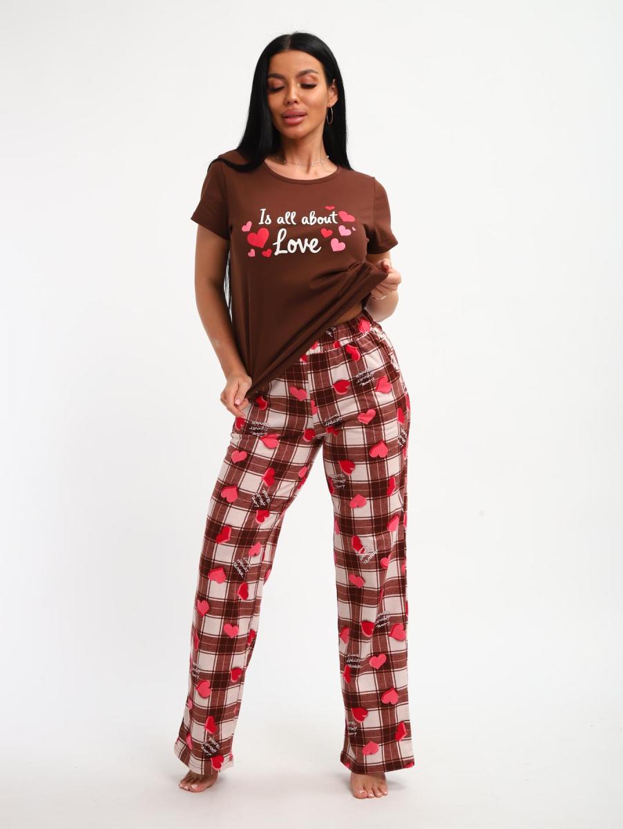 Пижама с брюками (01066, коричневый)