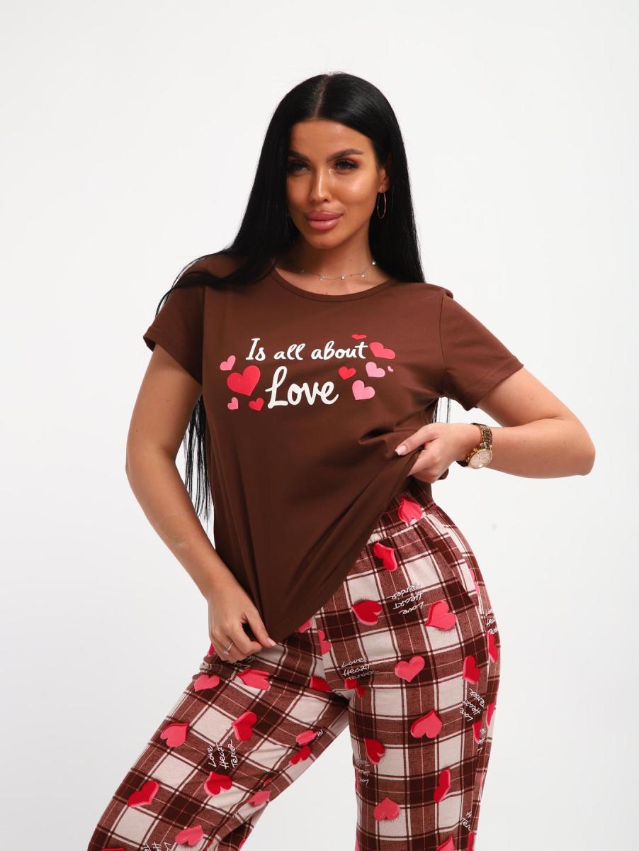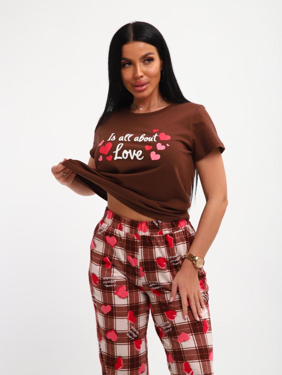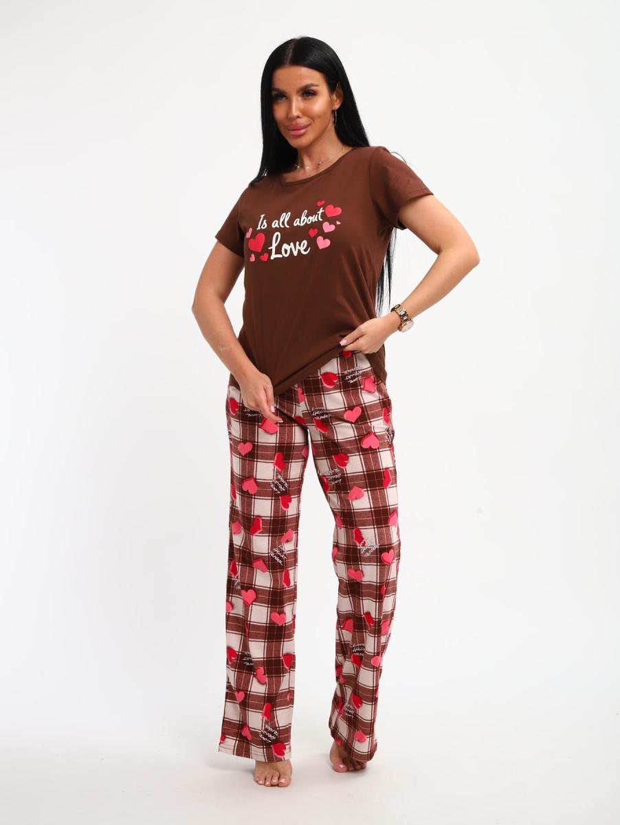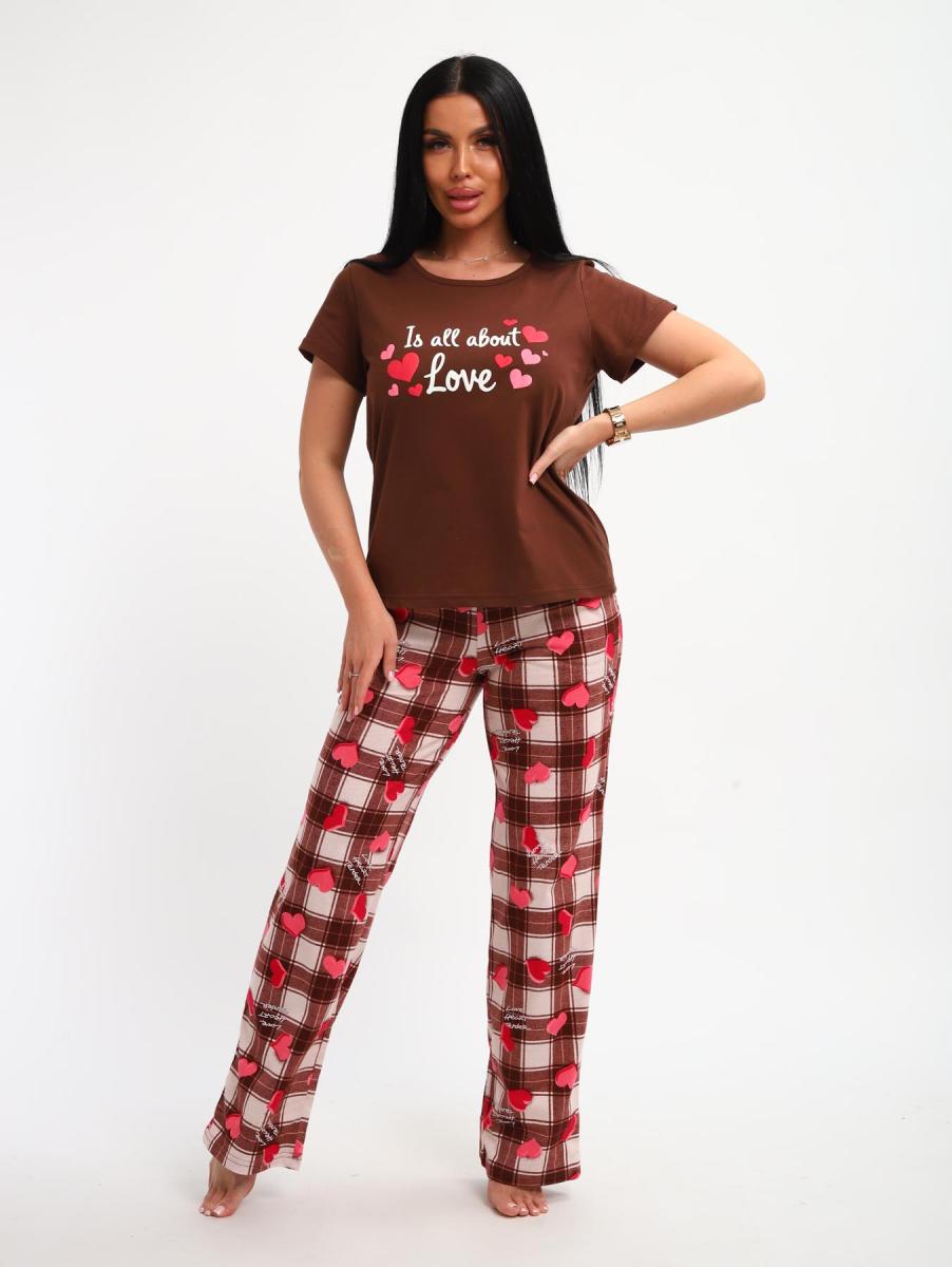 Пижама с брюками (01066, коричневый)