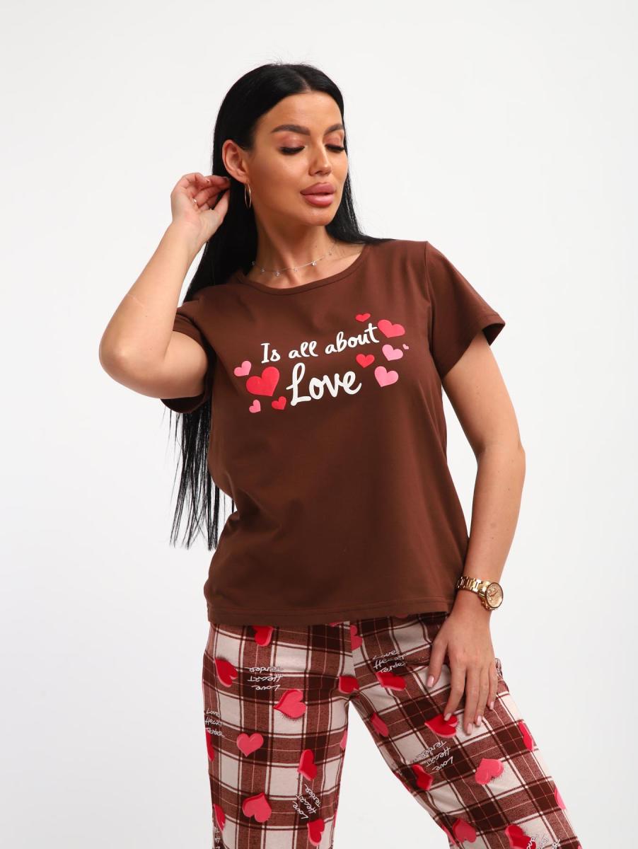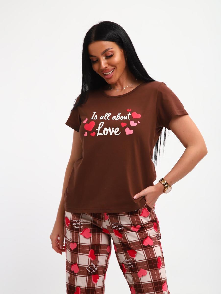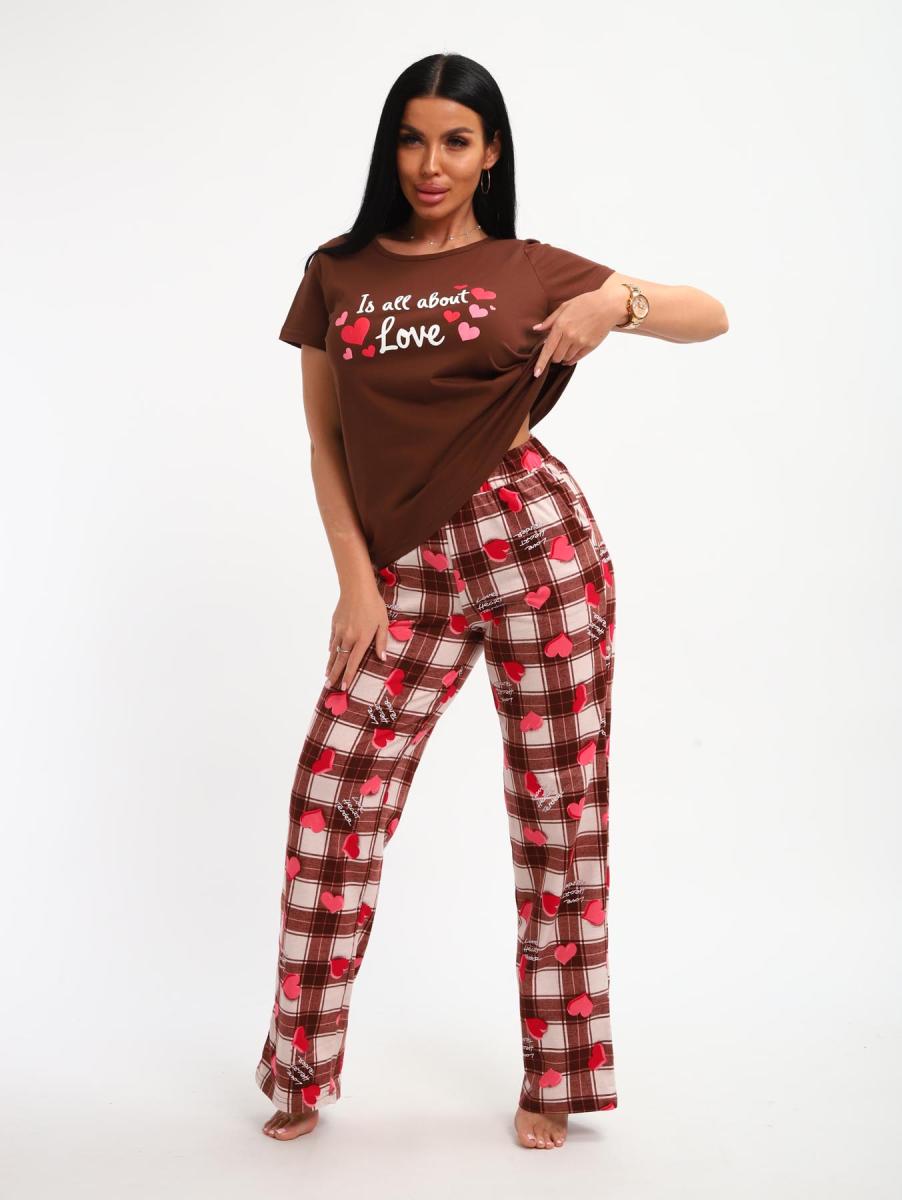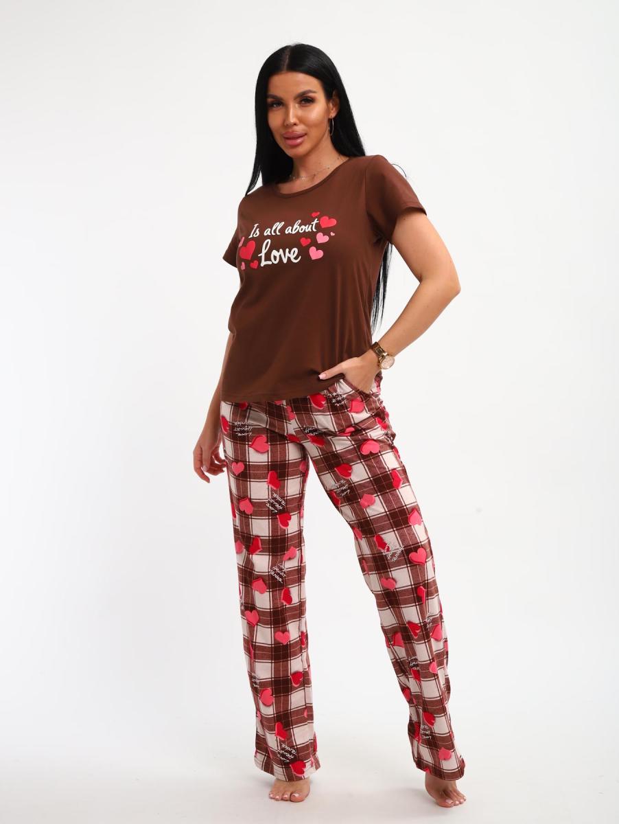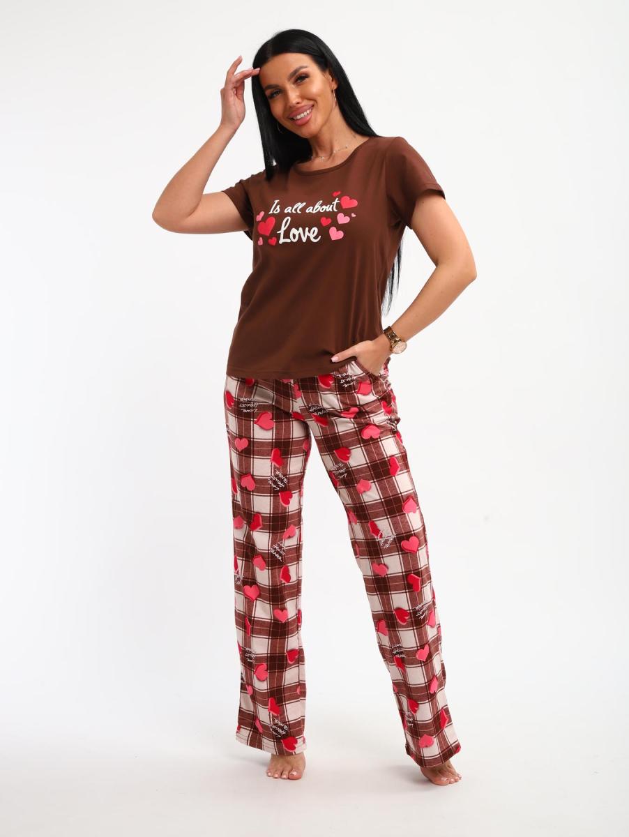 Пижама с брюками (01066, коричневый)