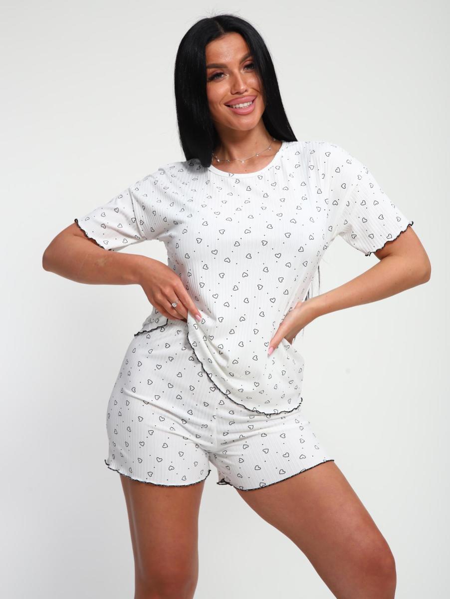 Пижама женская - футболка с шортами. Футболка прямого свободного кроя, со спущенным плечом. Шорты высокой посадки - удобные и свободные. Пижама очень комфортная для сна и отдыха. Можно использовать как домашний костюм. Отлично подойдет в качестве подарка на праздник или День Рождения.