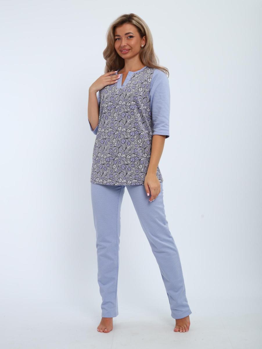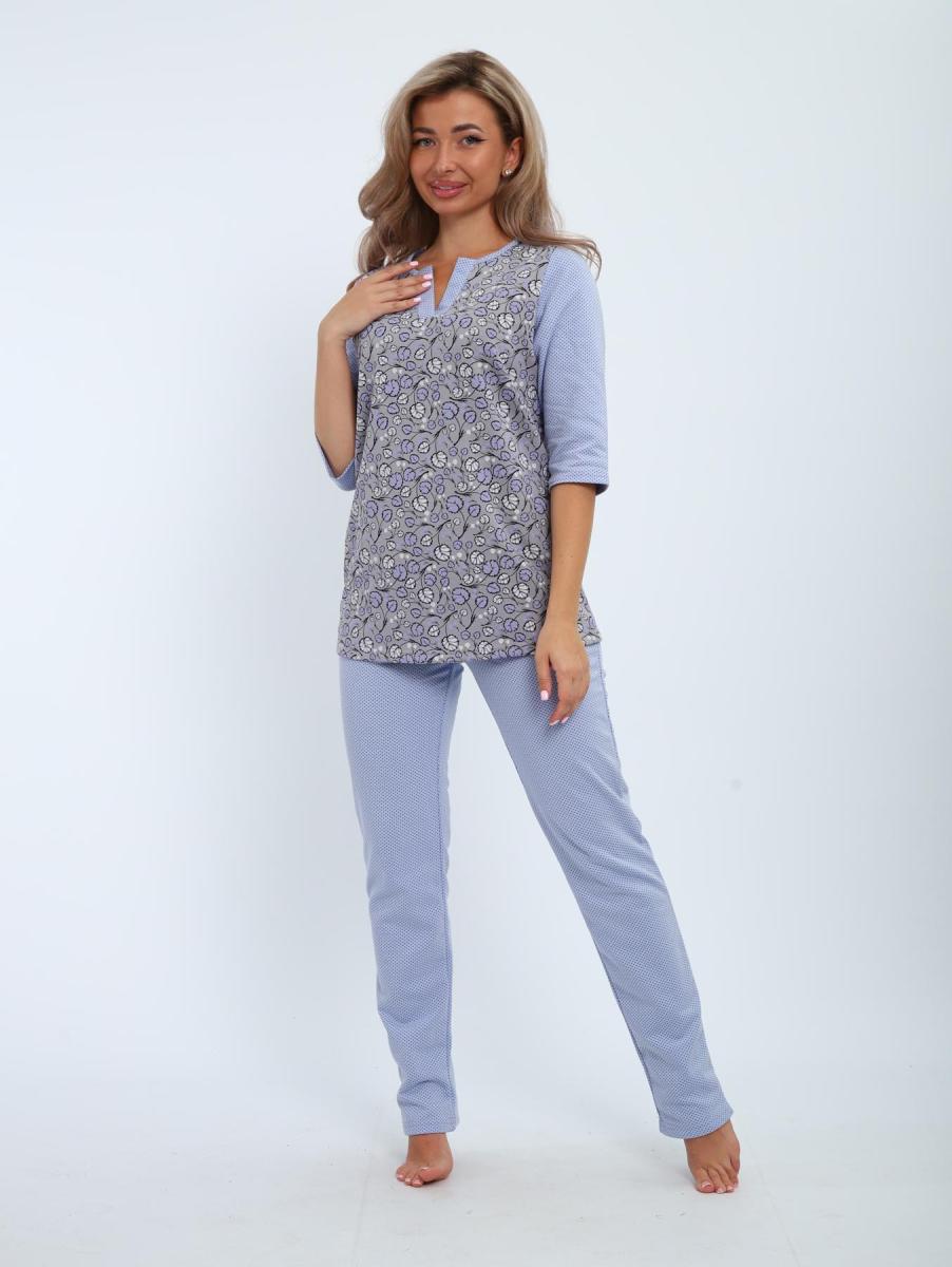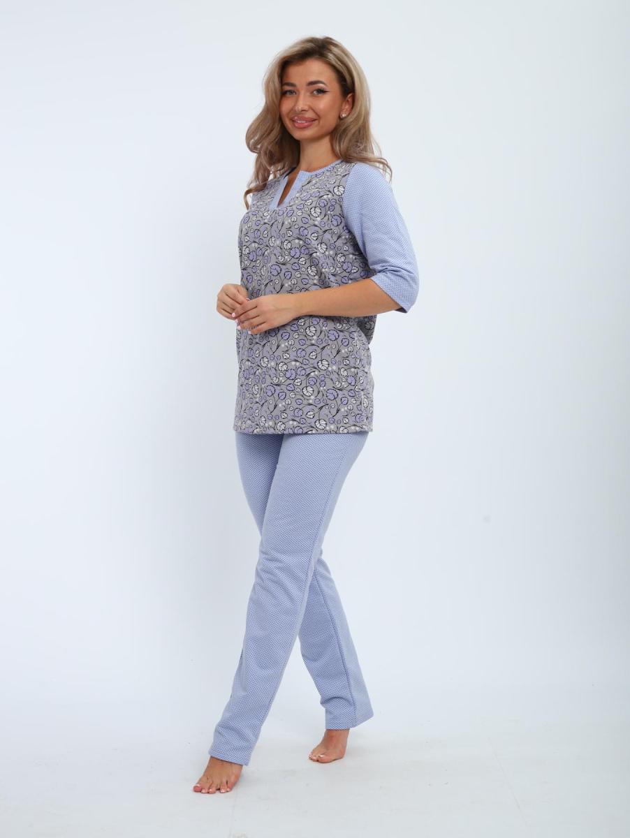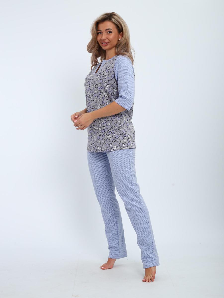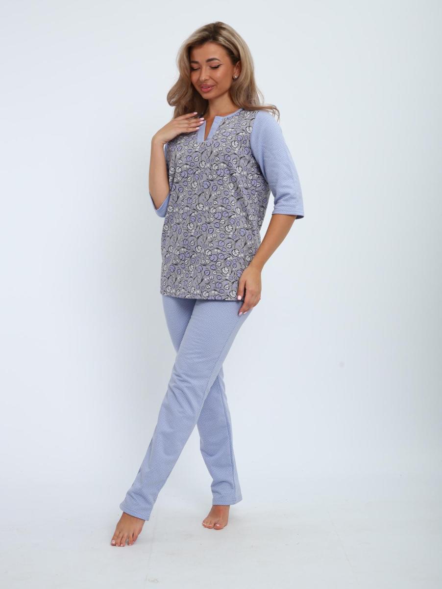 Пижама с брюками футер с начёсом (01059, серо-голубой)