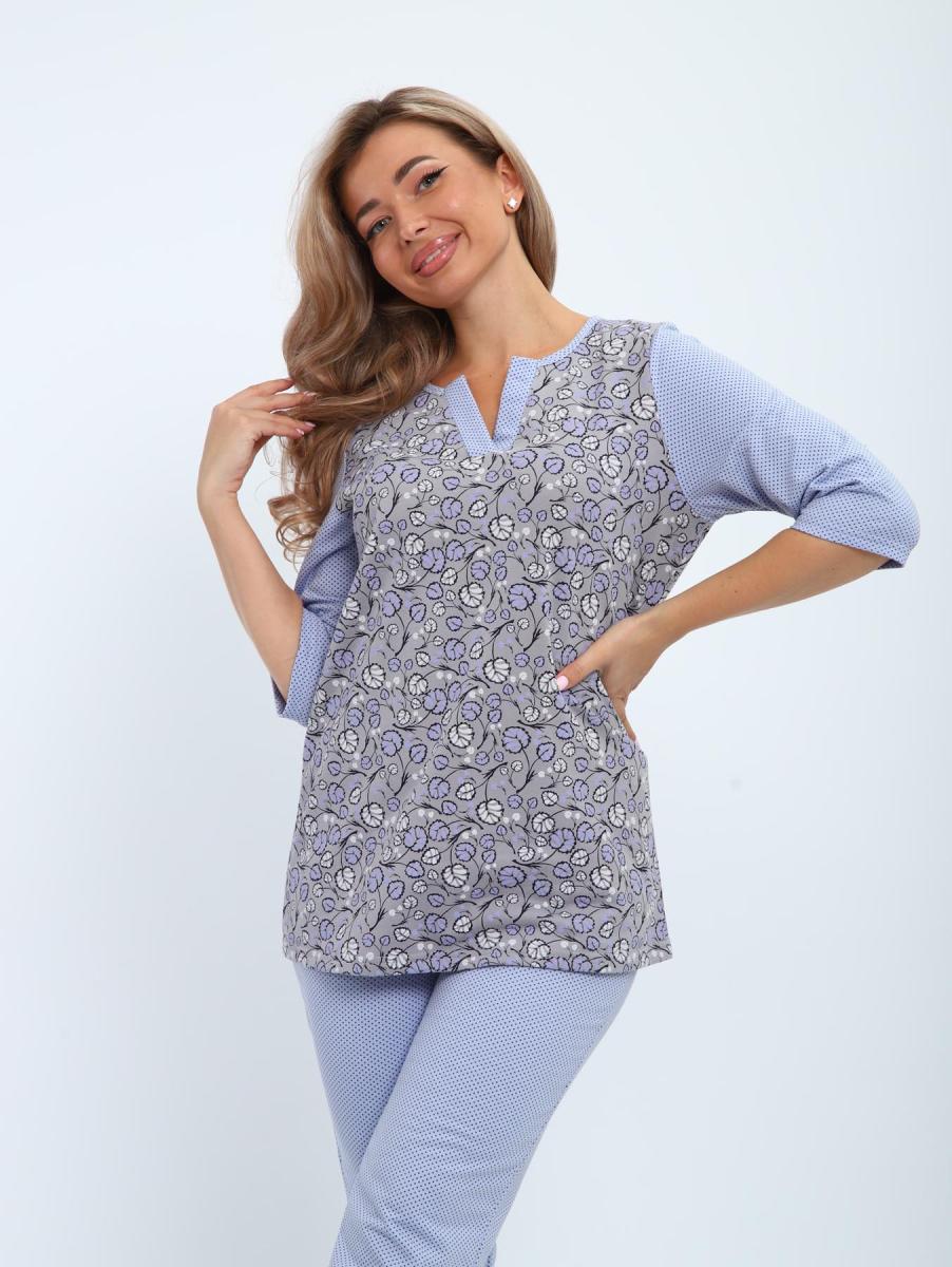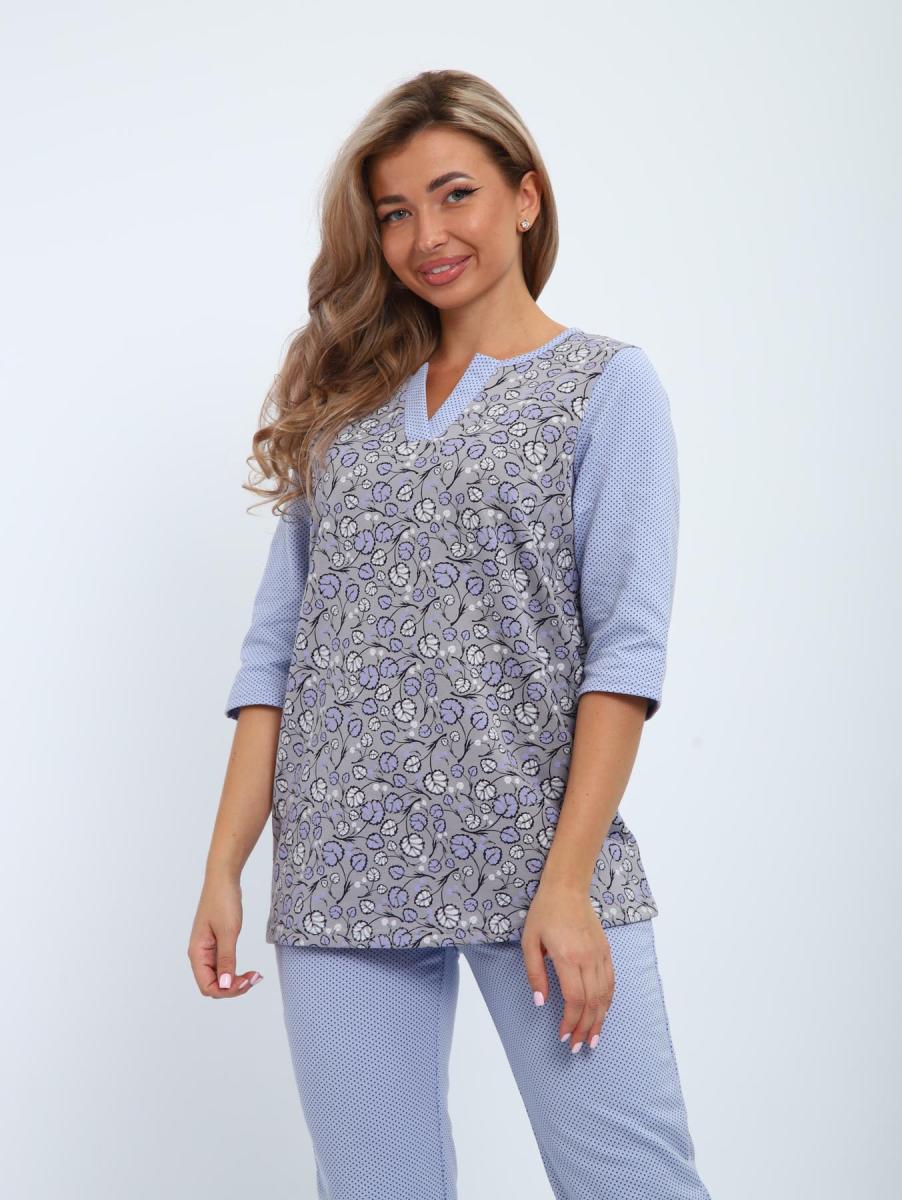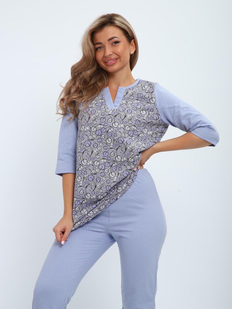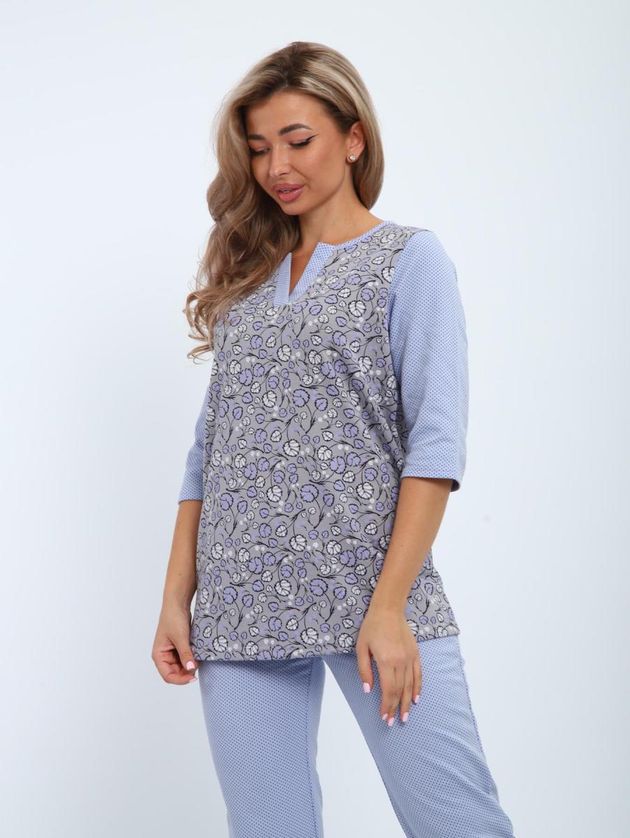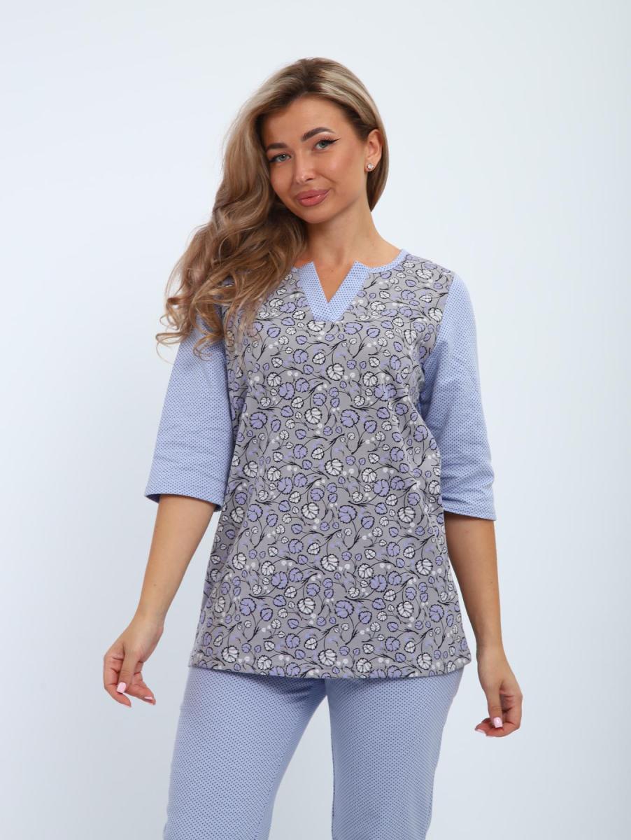 Пижама с брюками футер с начёсом (01059, серо-голубой)