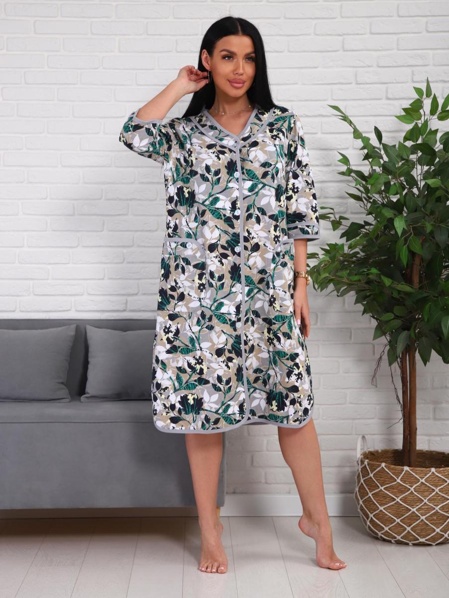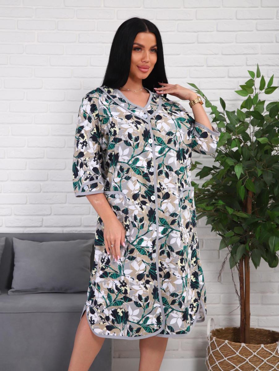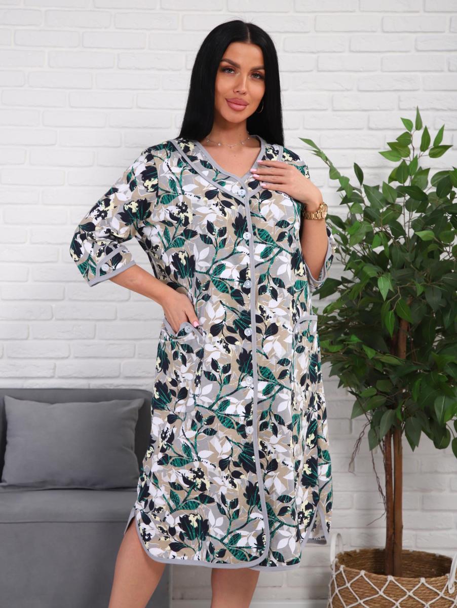 Халат женский на пуговицах с карманами (01076, зеленый)