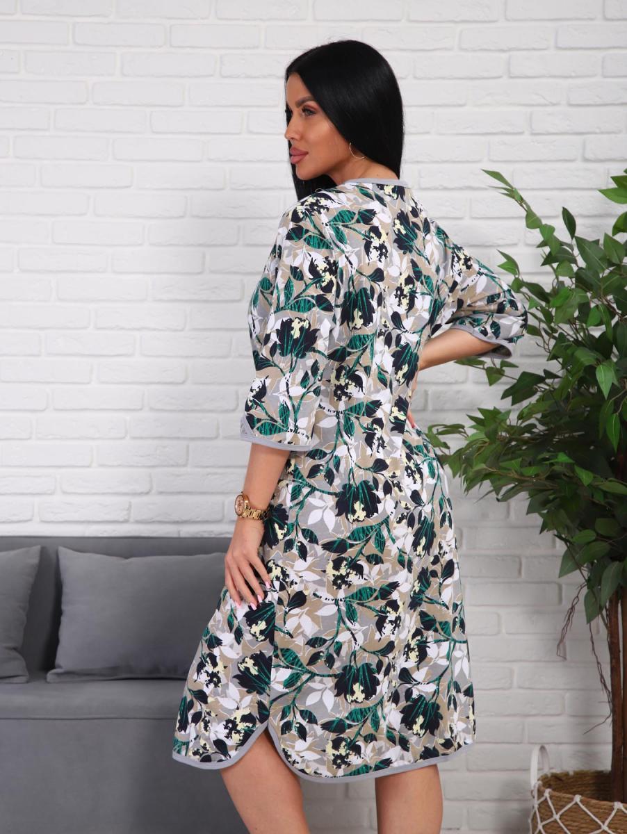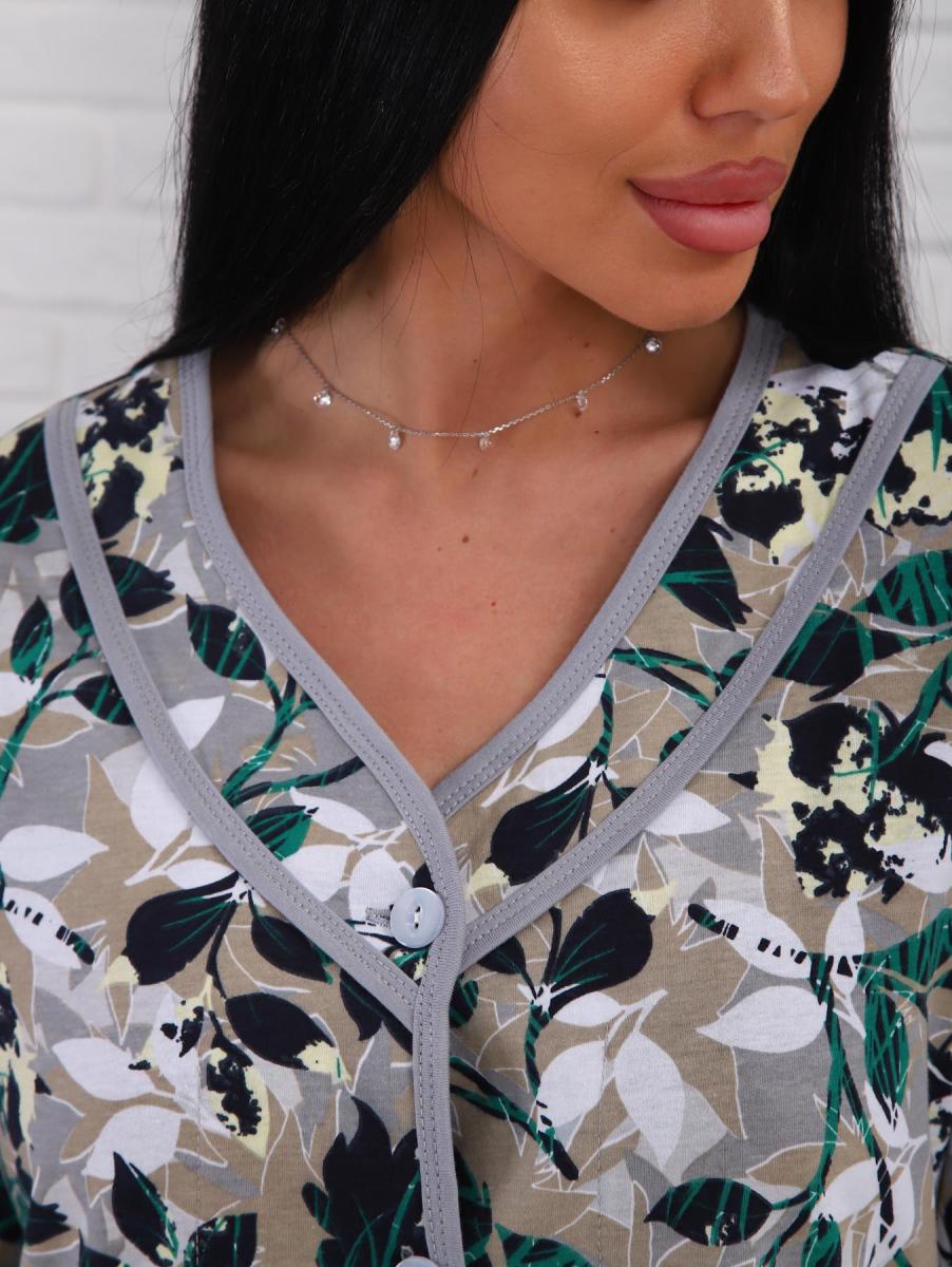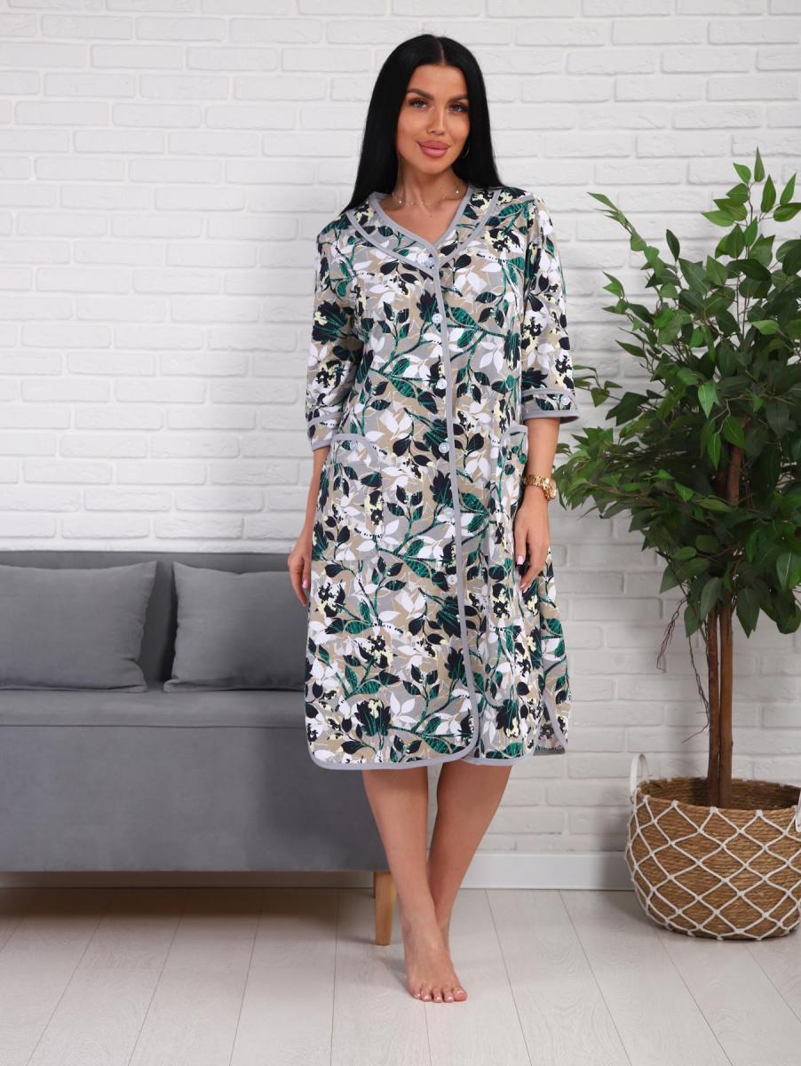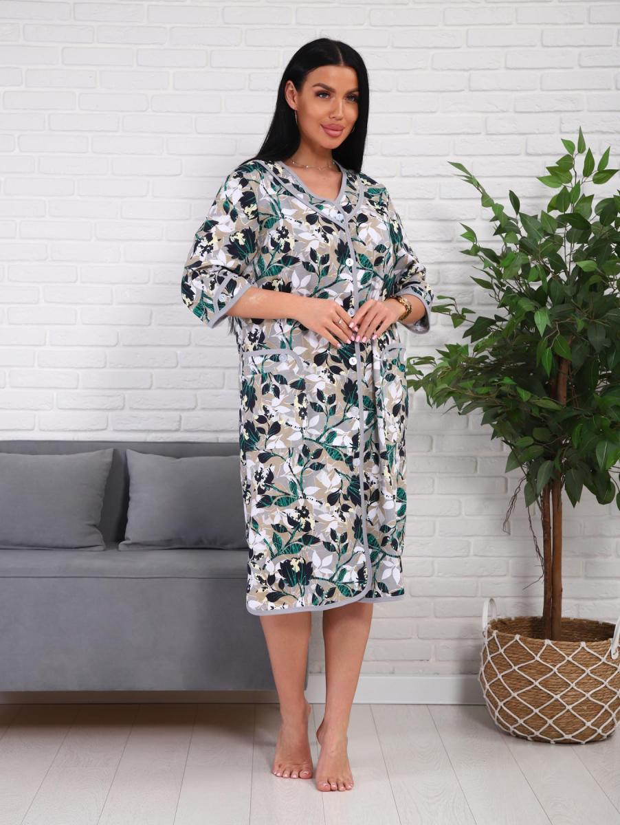 Халат женский на пуговицах с карманами (01076, зеленый)