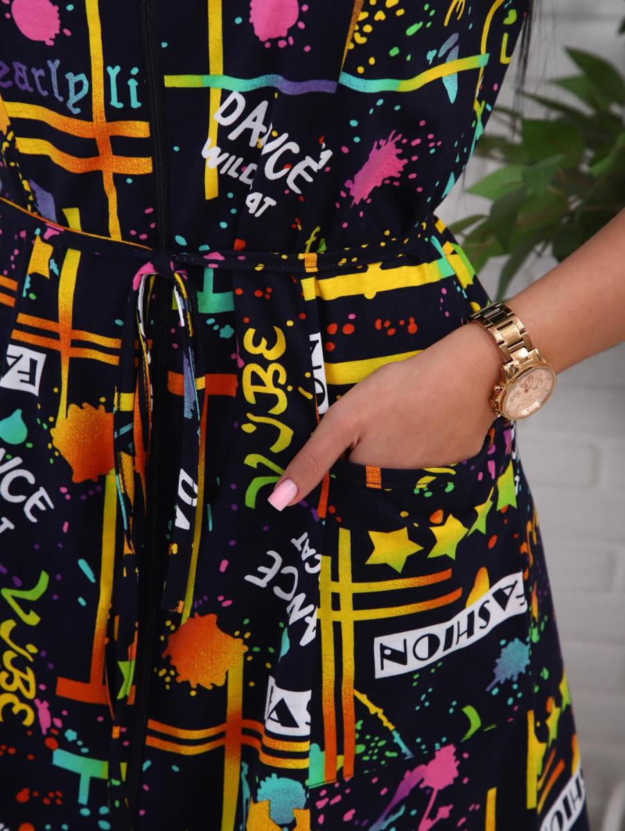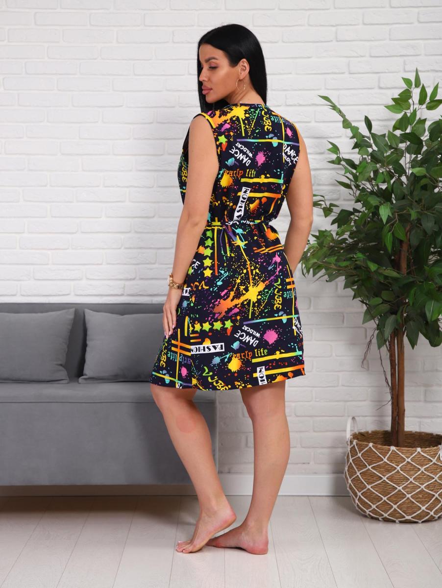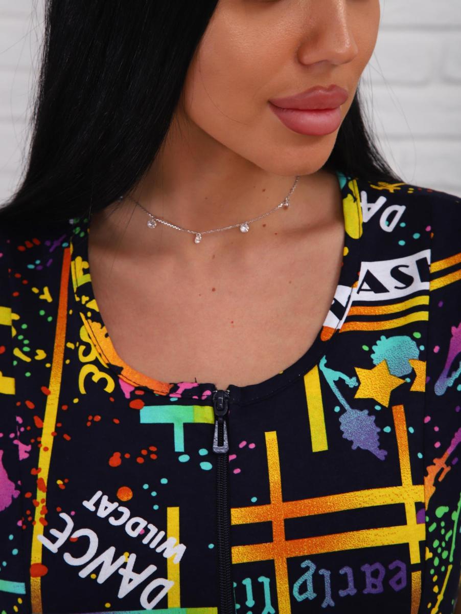 Халат женский, укороченной модели, без рукавов на молнии. В боковой шов с одной стороны вшиты "хлястики" для удобства и завязок. Халат очень хорошо подойдет для домашних дел. Нацелен для весенне-летнего периода.
