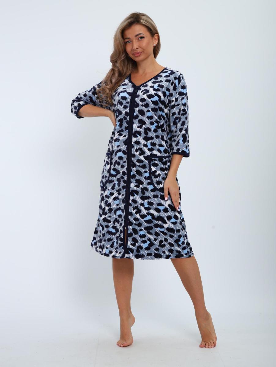 Халат велюровый на молнии (00941, голубой)