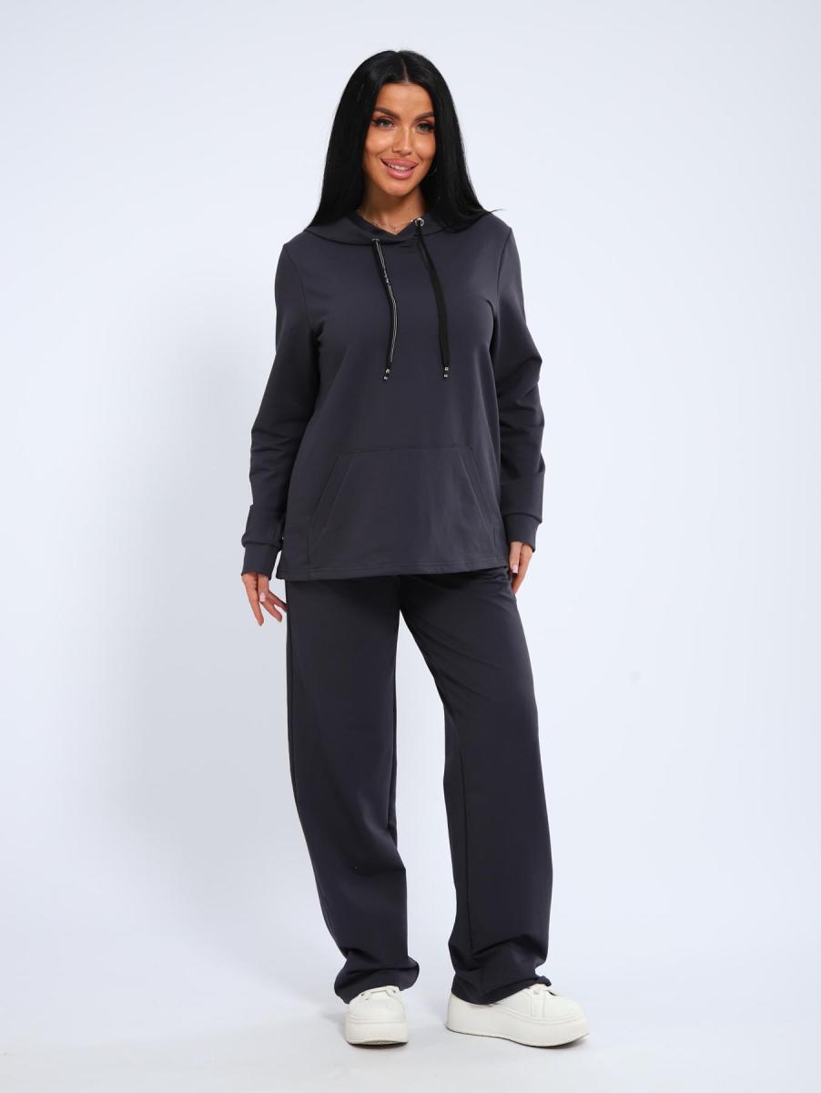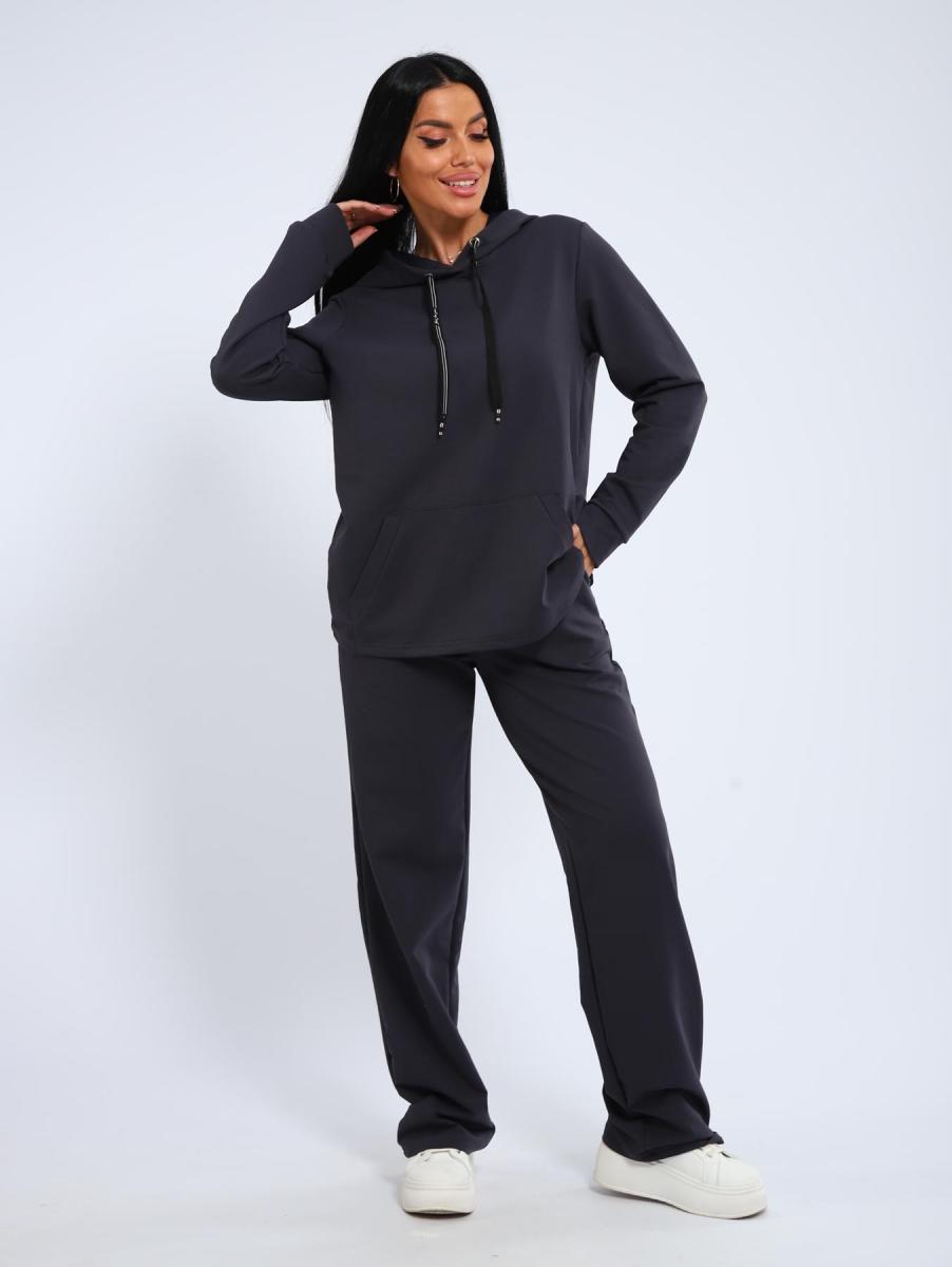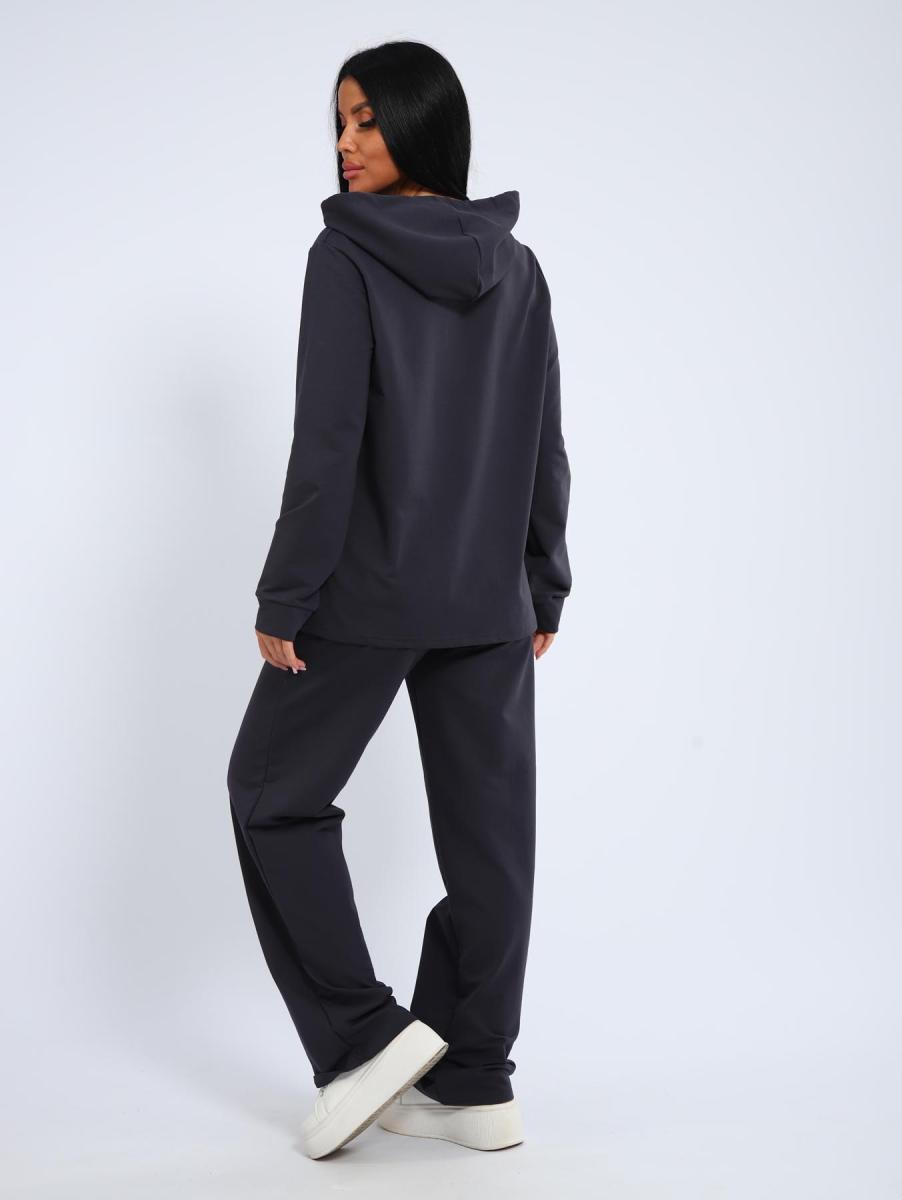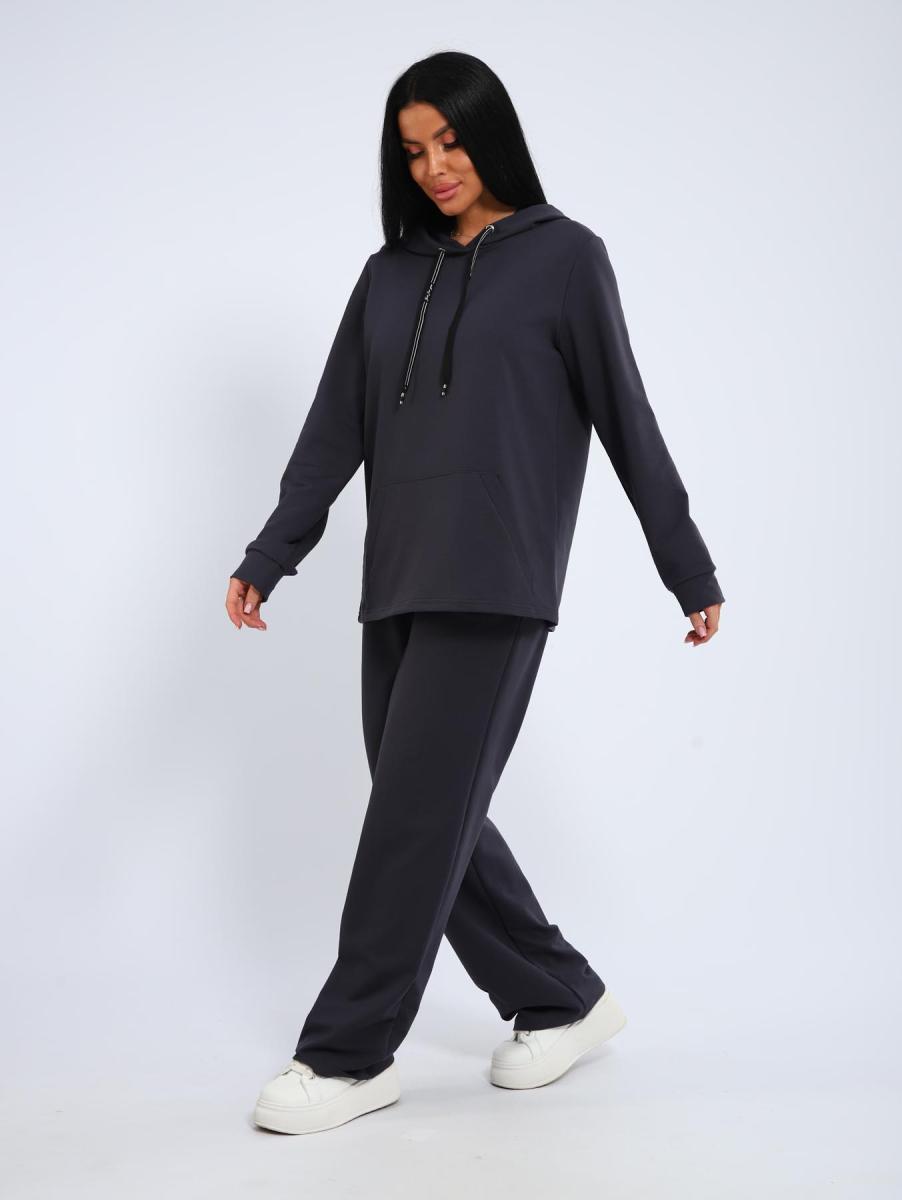 Костюм с брюками прямого кроя. Толстовка с капюшоном и накладным карманом.