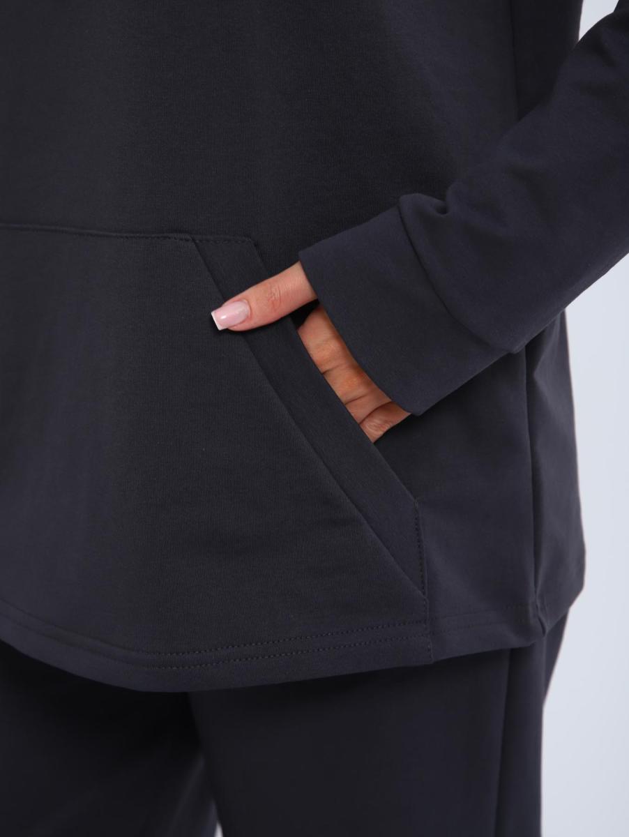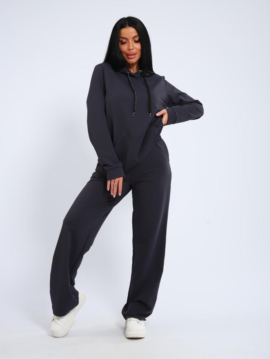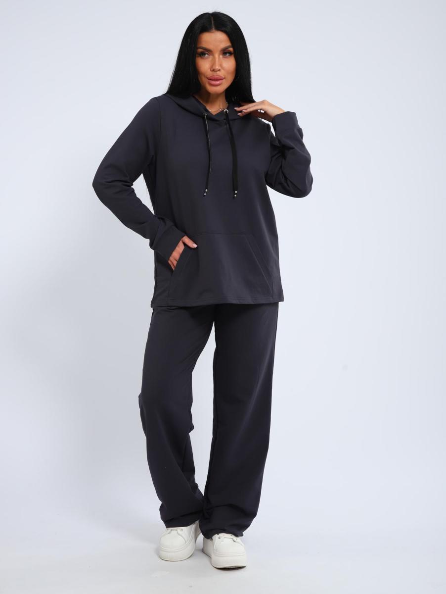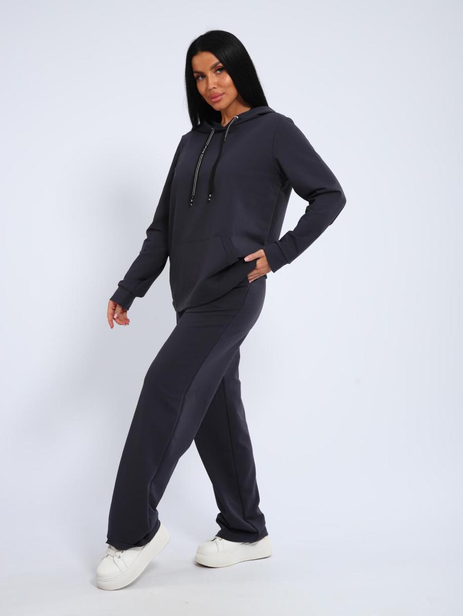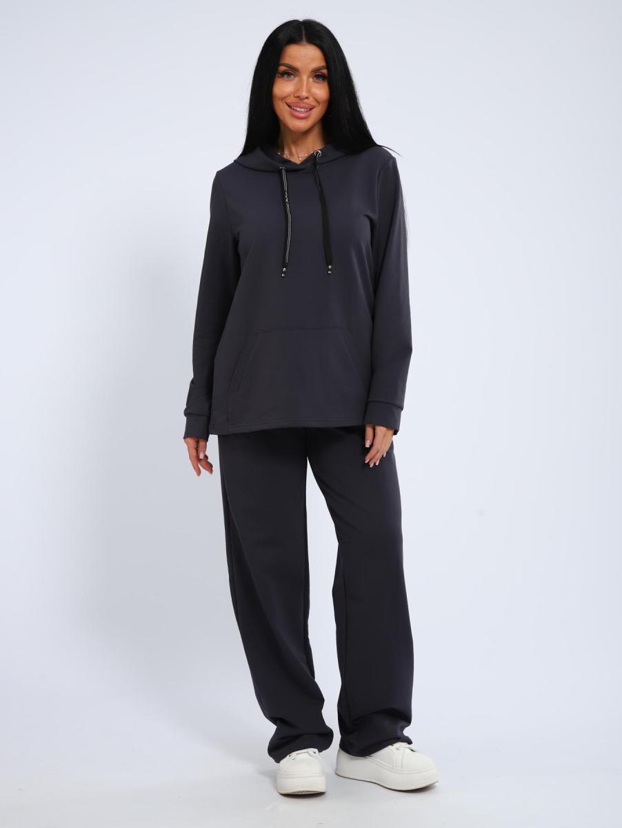 Костюм с брюками прямого кроя. Толстовка с капюшоном и накладным карманом.