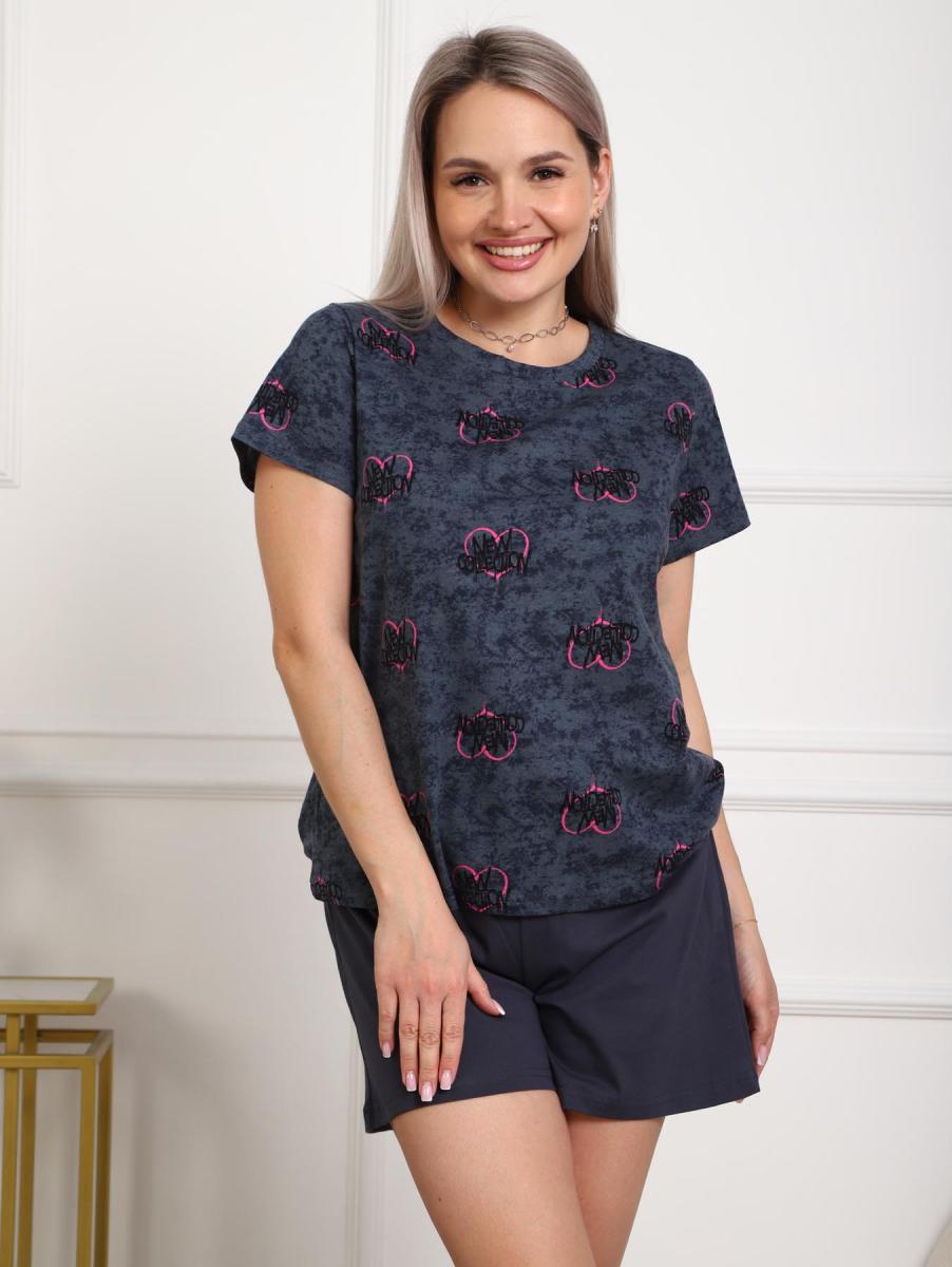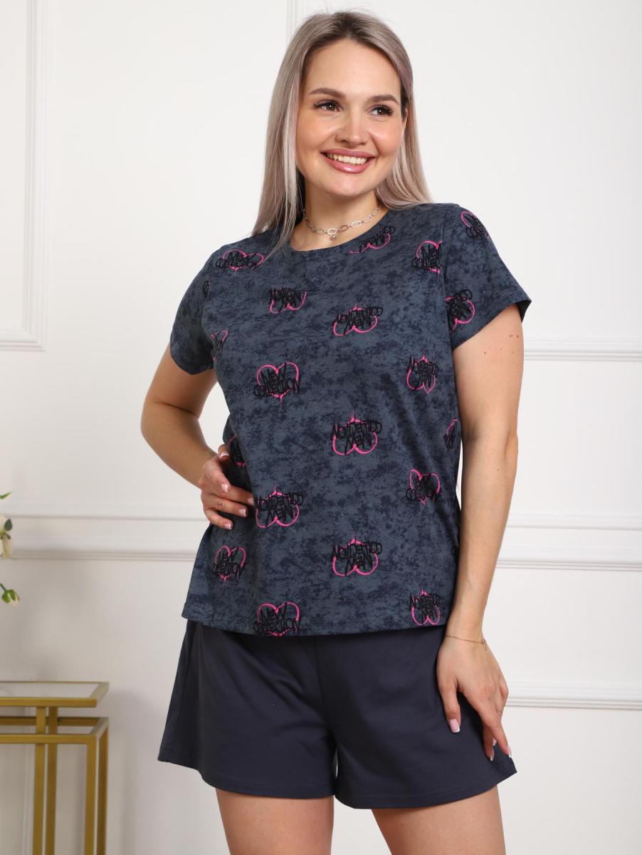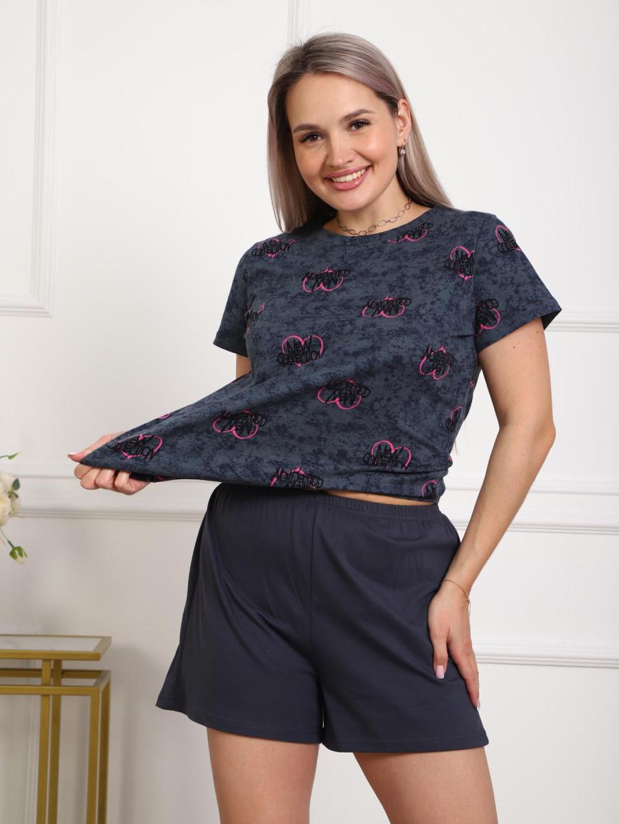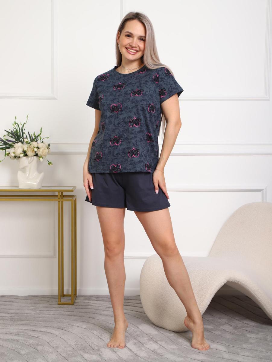 Костюм с шортами из хлопка 100%. Удобная и свободная футболка с обтачкой по горловине. Шорты на резинке свободные с высокой посадкой. Костюм домашний, летний для дома, дачи, отдыха, прогулок.