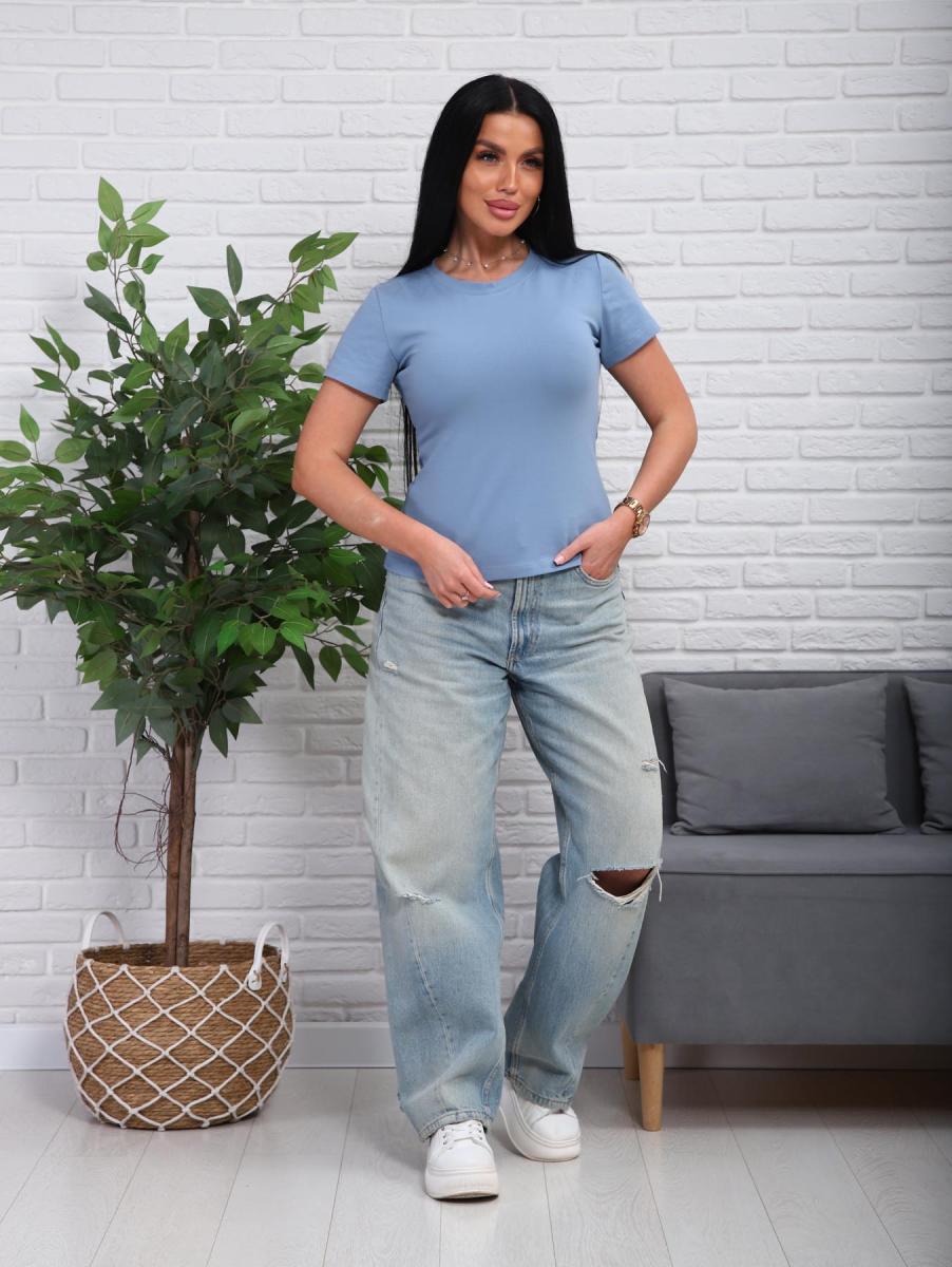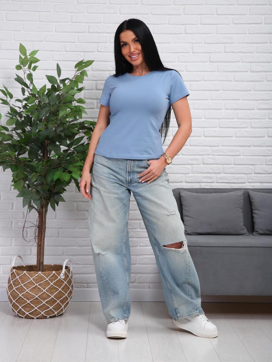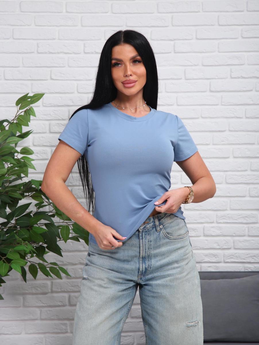 Футболка женская с коротким рукавом из мягкой эластичной ткани - кулирка с лайкрой пенье. Облегает модель и красиво сидит по фигуре, прекрасно смотрится. Модель футболки очень удобная и трендовая.