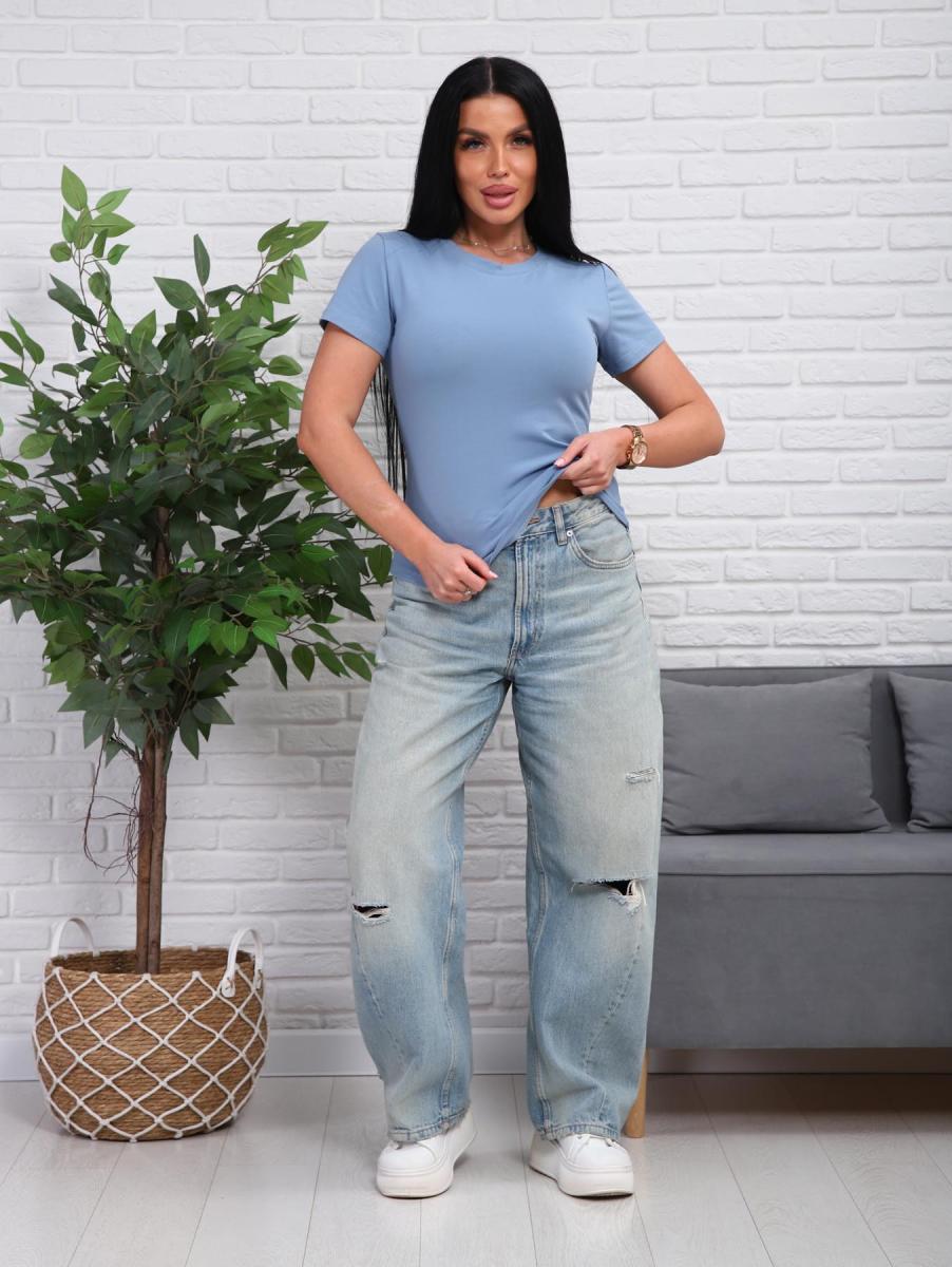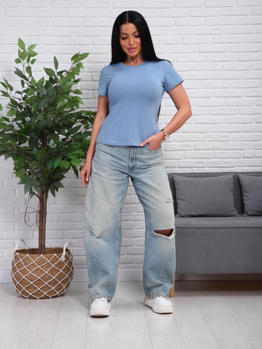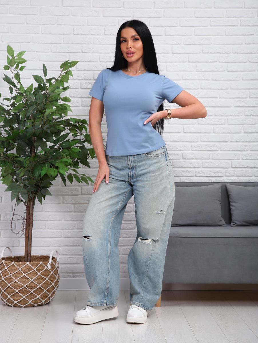 Футболка женская с коротким рукавом из мягкой эластичной ткани - кулирка с лайкрой пенье. Облегает модель и красиво сидит по фигуре, прекрасно смотрится. Модель футболки очень удобная и трендовая.