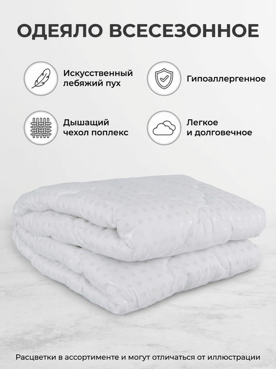 Чехол одеяла выполнен из поплекса, надежно удерживает наполнитель и приятен на ощупь. Чехол одеяла представлен в ассортименте возможных расцветок и может отличаться от фото на сайте.
