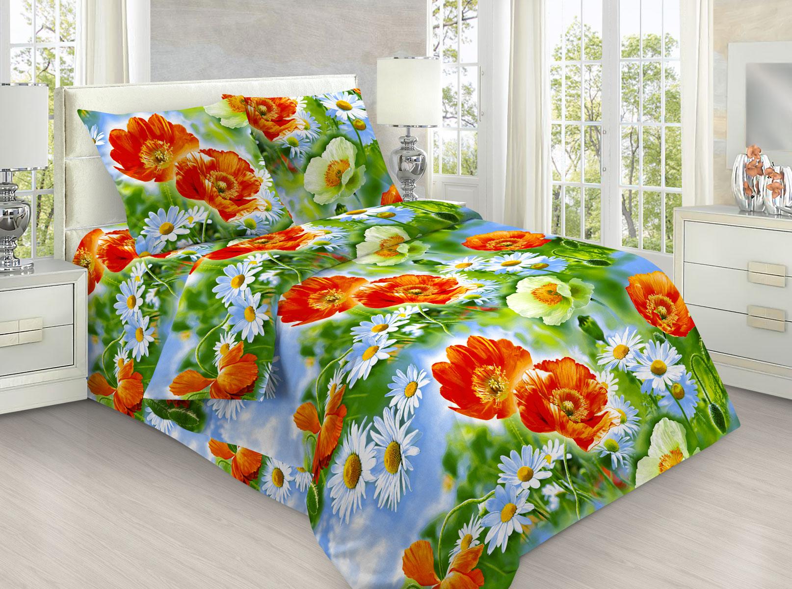 Комплект постельного белья Маки 3D бязь