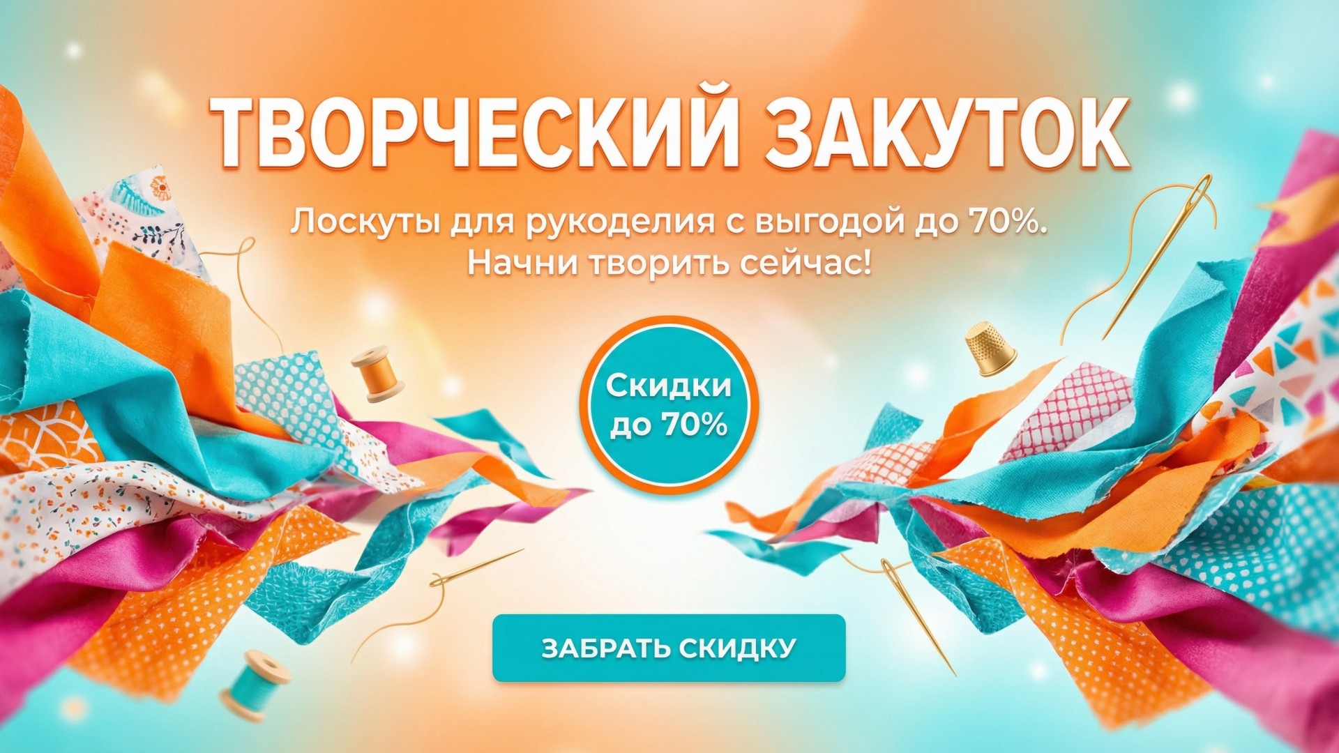 Распродажа лоскутов для рукоделия со скидками до 70%. Разнообразные ткани для пэчворка, аппликаций и творческих проектов. Качественные материалы различных расцветок и фактур. Воплотите свои рукодельные идеи в жизнь.
