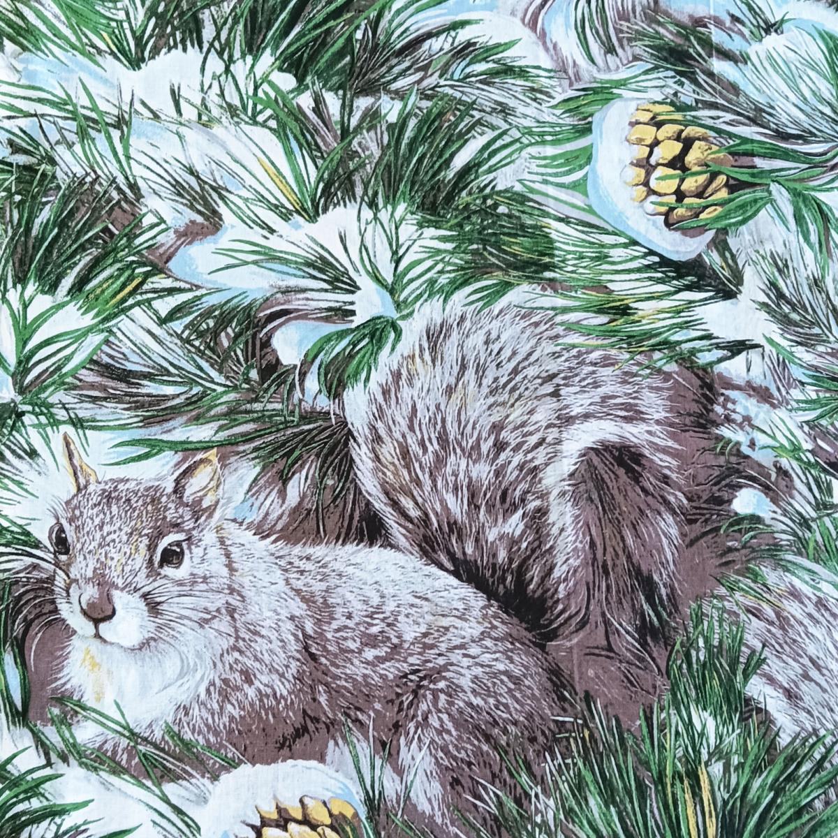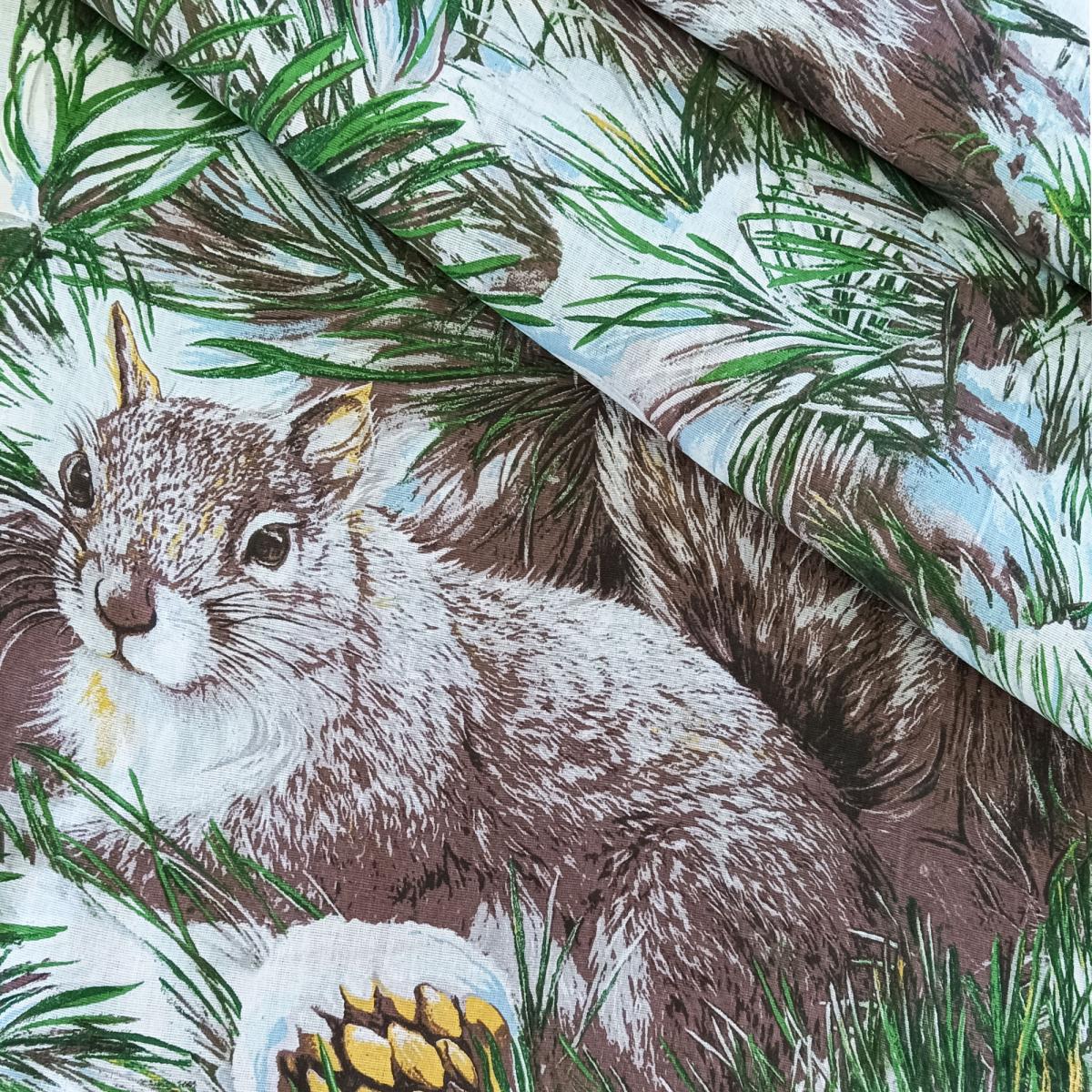 Придайте вашему интерьеру уникальный стиль с нашей новой тканью! Эта бязь с шириной 150 см станет идеальным выбором для создания уютных текстильных изделий. Яркий и насыщенный дизайн с изображением милых белок на фоне зелёных елей и шишек добавит живости и свежести в ваше пространство.