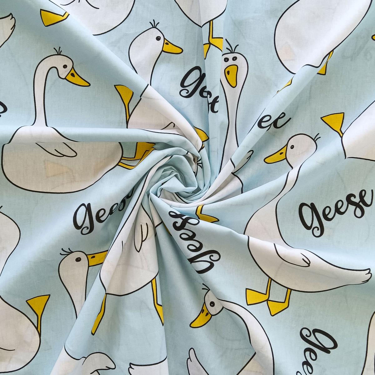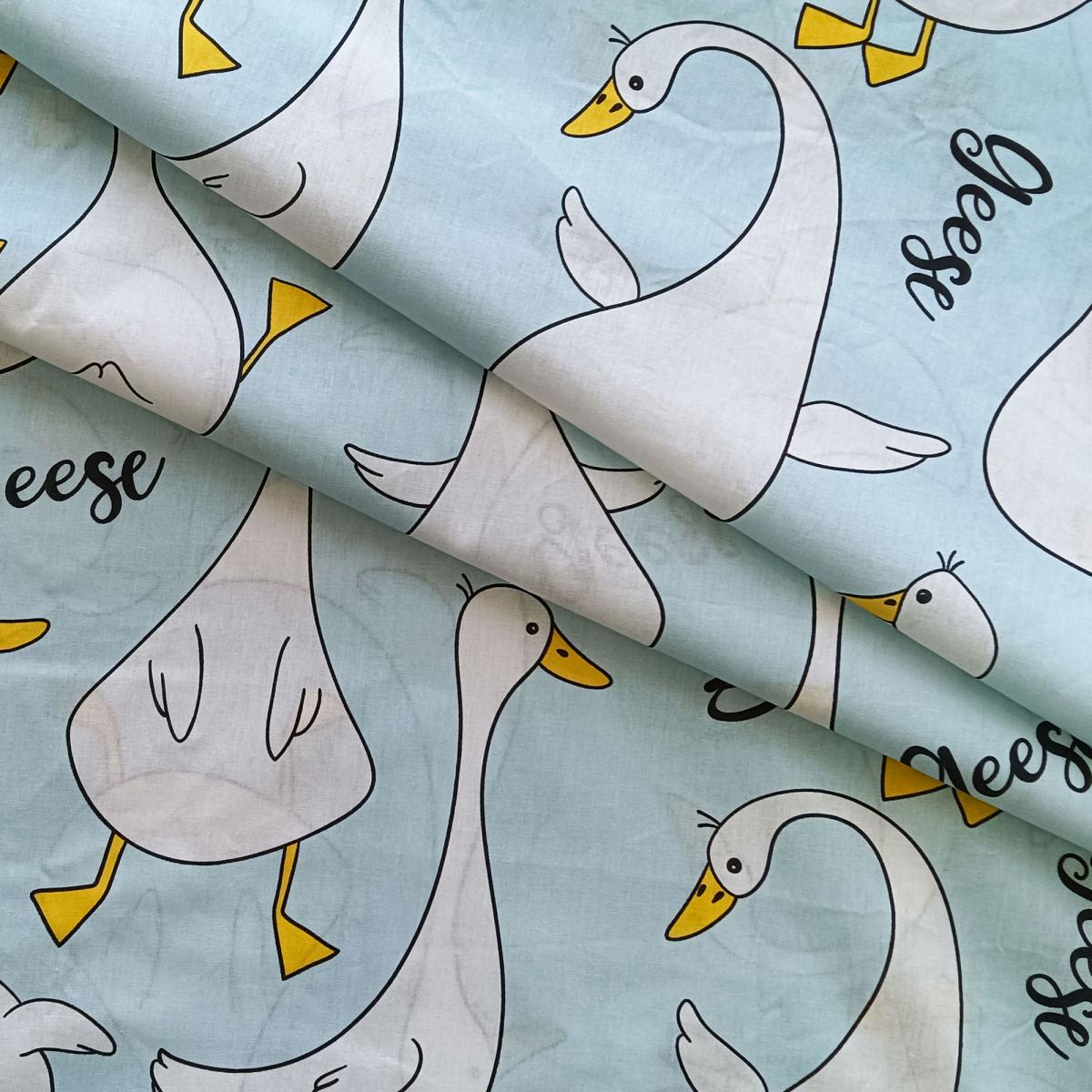 Комплект постельного белья выполнен из поплина, хлопковой мягкой ткани. Постельное белье из поплина спокойно выдерживает многократные стирки в стиральной машине без ухудшения внешнего вида и устойчиво к изнашиванию. А популярный и стильный принт гусей добавит в вашу спальню особого шарма и уюта.