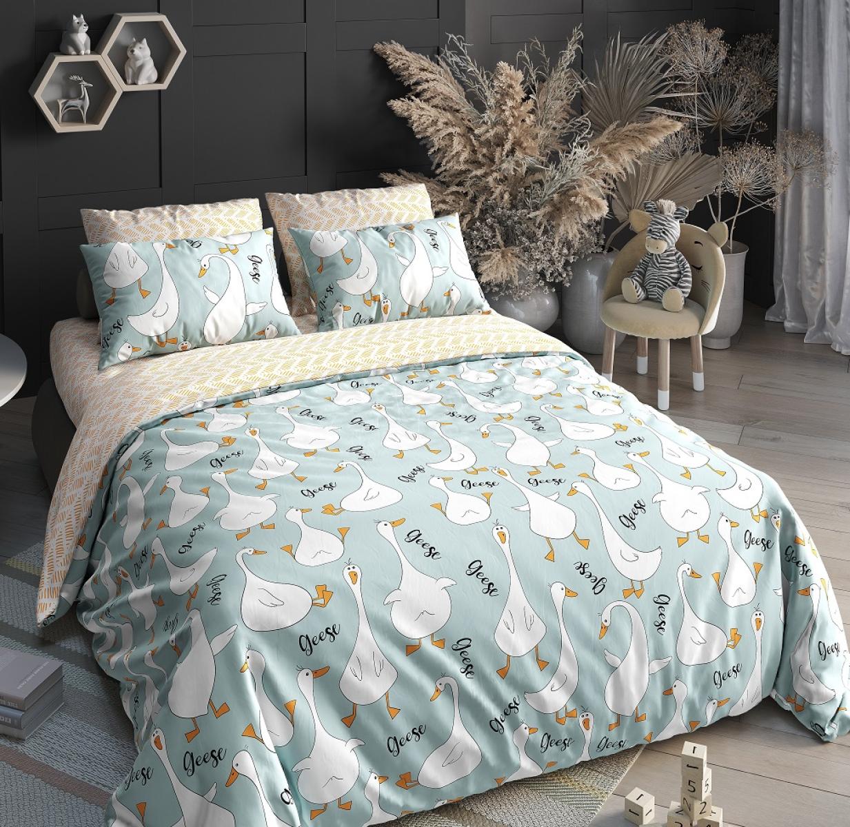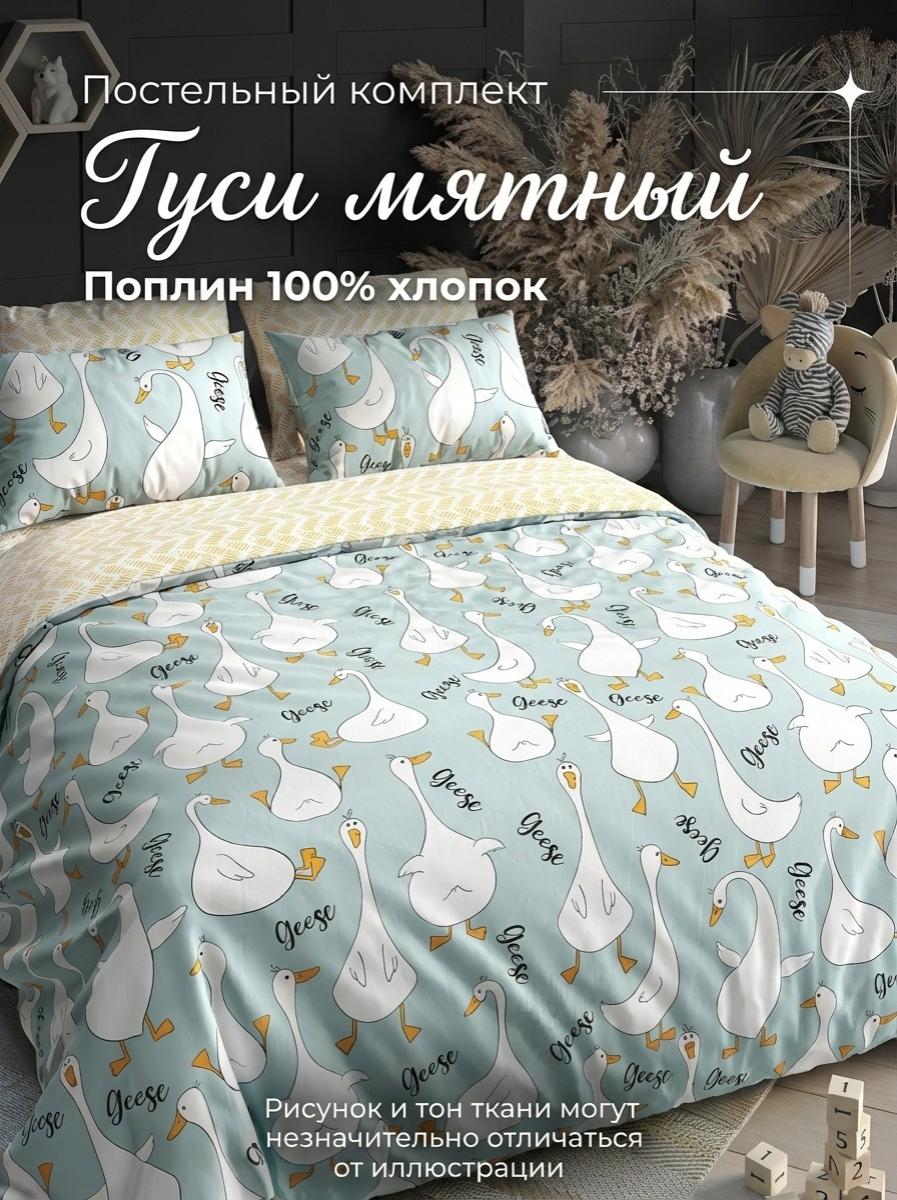 РегистрацияКомплект постельного белья Гуси мятный Поплин