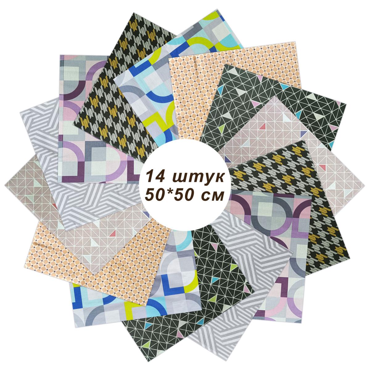Набор "Геометрия" — это идеальный выбор для творческих людей, которые любят создавать уникальные изделия. В комплект входит 14 лоскутов бязи размером 50*50 см, выполненных из 100% хлопка. В наборе представлены 7 стильных расцветок, по 2 лоскута каждого рисунка. Каждый лоскут обладает дизайном с геометрическими узорами, которые прекрасно сочетаются друг с другом. Этот набор станет отличным помощником в ваших творческих проектах, таких как: декорирование, аппликация, пэчворк, лоскутное шитье, скрапбукинг и многое другое.