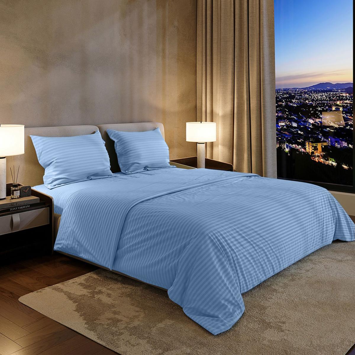 Простыня Шпинель небесный страйп-сатин