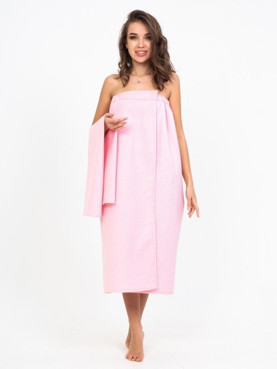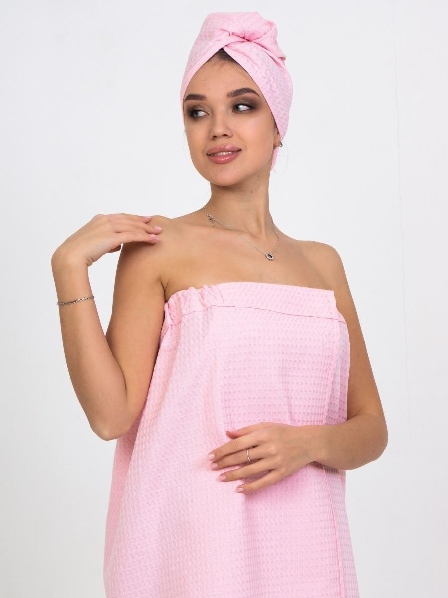 Женский набор для бани и сауны состоит из двух изделий: запашное банное полотенце для тела и полотенце для волос. Банные полотенца сшиты из вафельного полотна (100% хлопок) - легко впитывают влагу, являются быстросохнущими.
