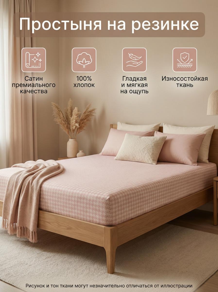 РегистрацияПростыня на резинке Розовый твид сатин
